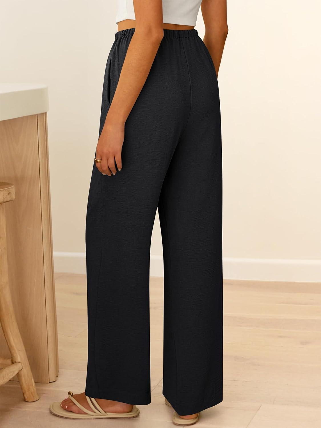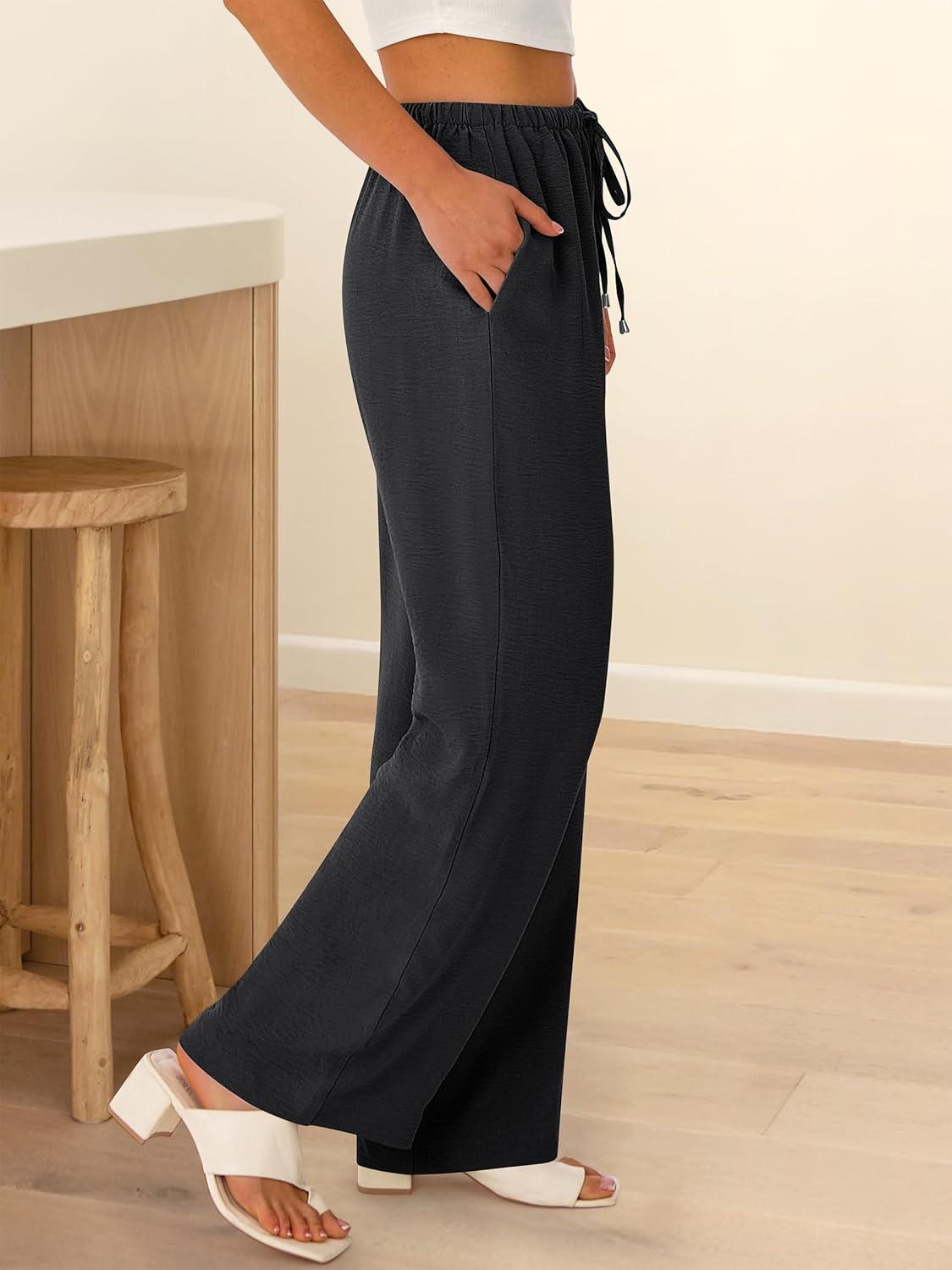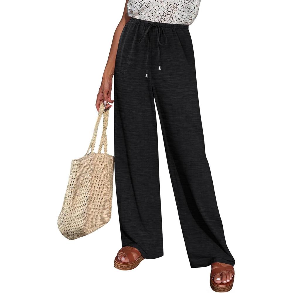 ABRABESS Womens Palazzo Pants Wide Leg Flowy Drawstring High Waisted Casual Trousers 2026 Summer Beach Vacation Clothes(Black)