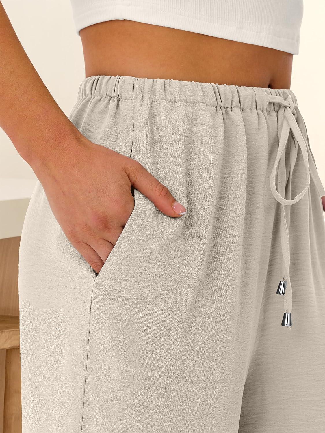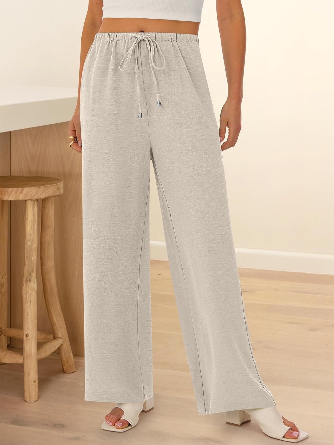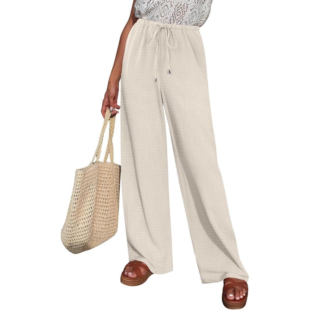 imageABRABESS Womens Palazzo Pants Wide Leg Flowy Drawstring High Waisted Casual Trousers 2026 Summer Beach Vacation ClothesLake