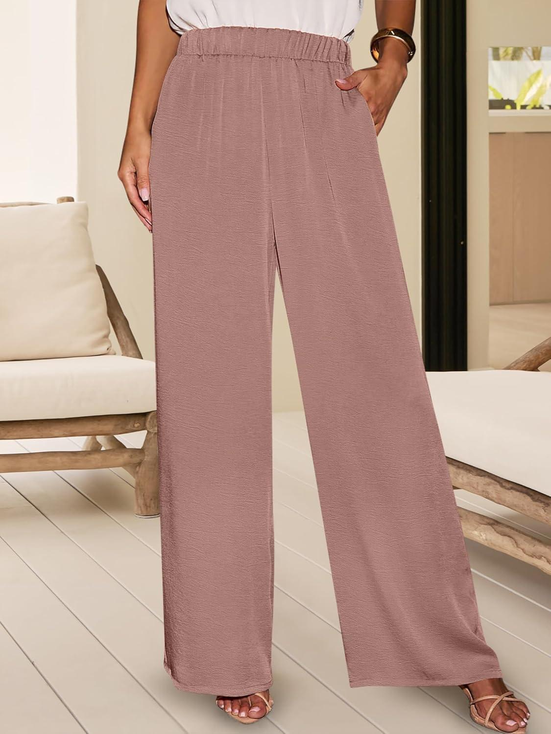 ANRABESS 2 Piece Sets for Women Lounge Outfits Summer V Neck Cap Sleeve Top Wide Leg Pants Vacation Beach Travel Set(Pink)
