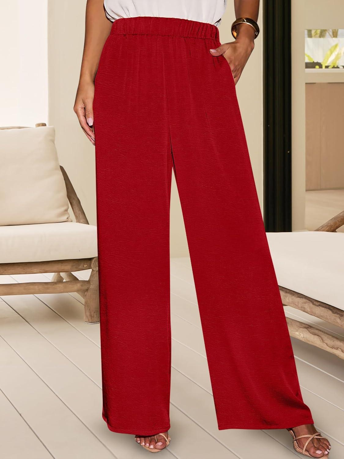 ANRABESS 2 Piece Sets for Women Lounge Outfits Summer V Neck Cap Sleeve Top Wide Leg Pants Vacation Beach Travel Set(Red)
