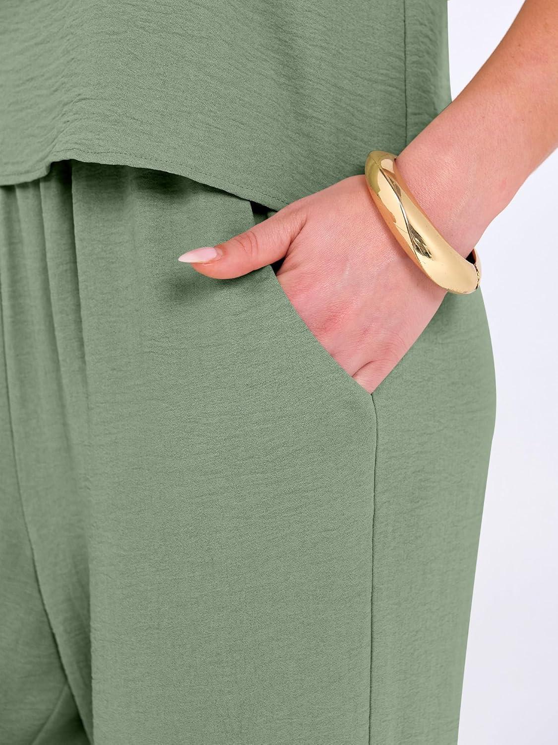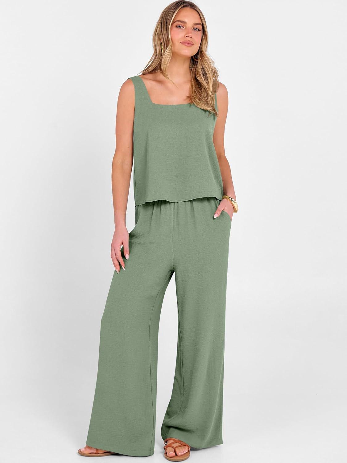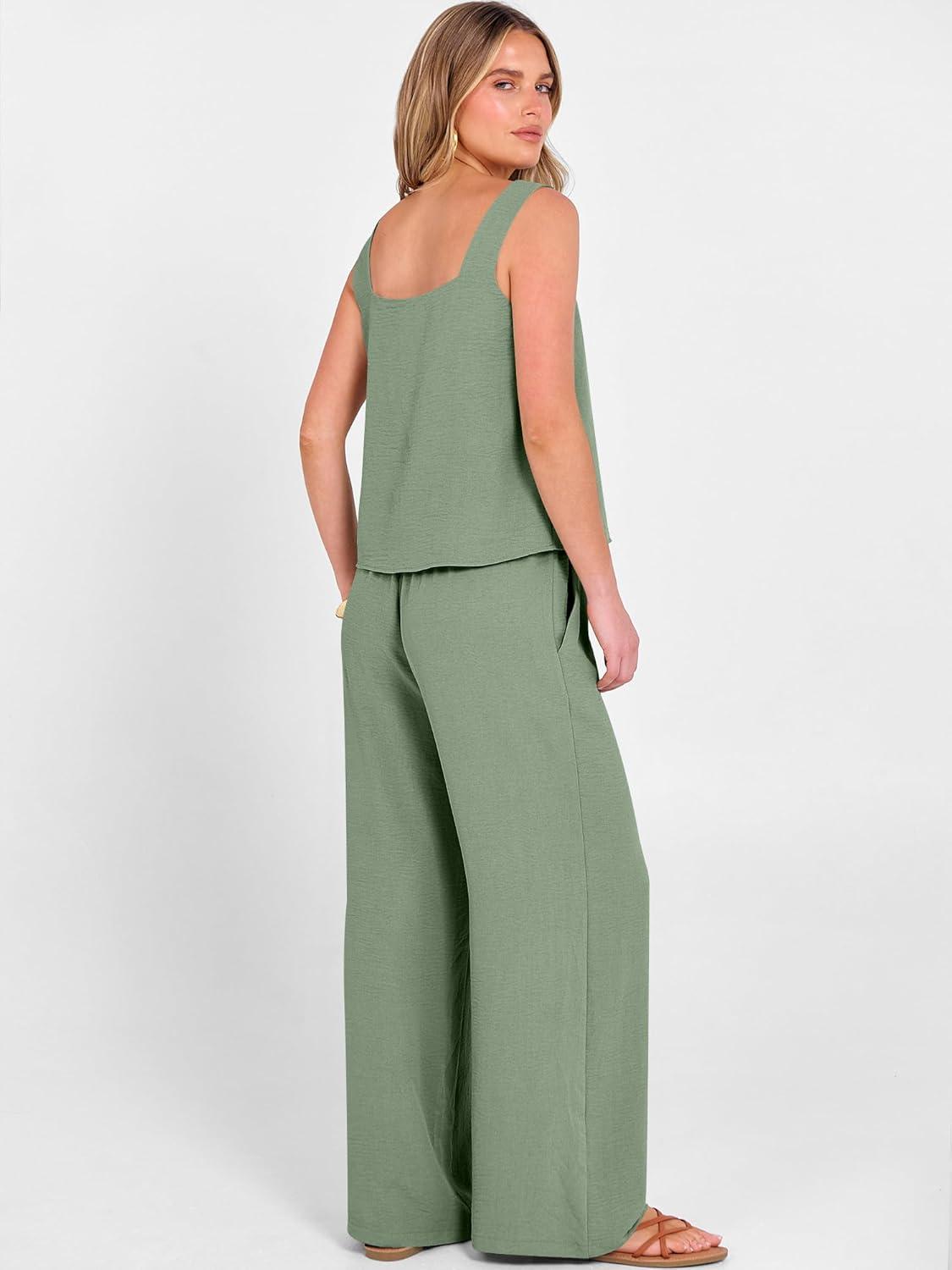 imageANRABESS 2 Piece Sets for Women Outfits Lounge Matching Casual Travel Wide Leg Pants Crop Top Summer Vacation Beach ClothesLight Green