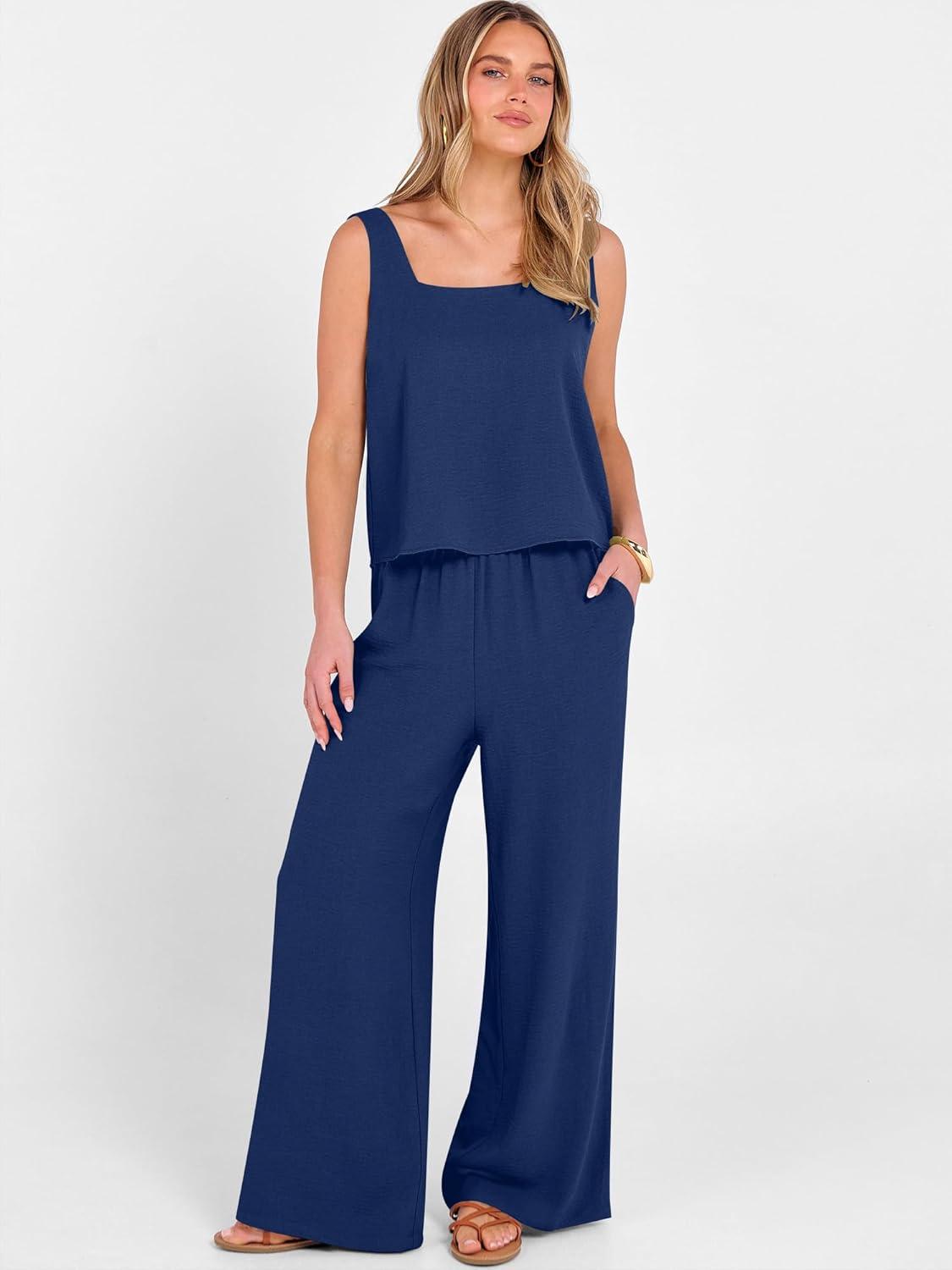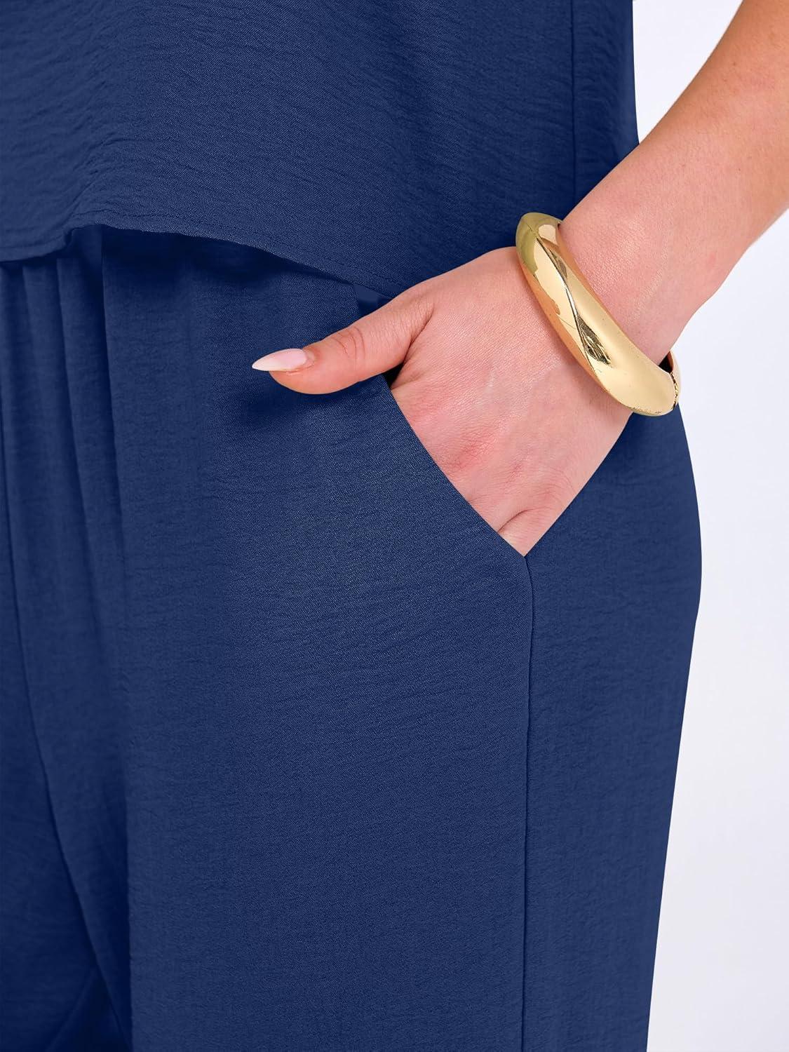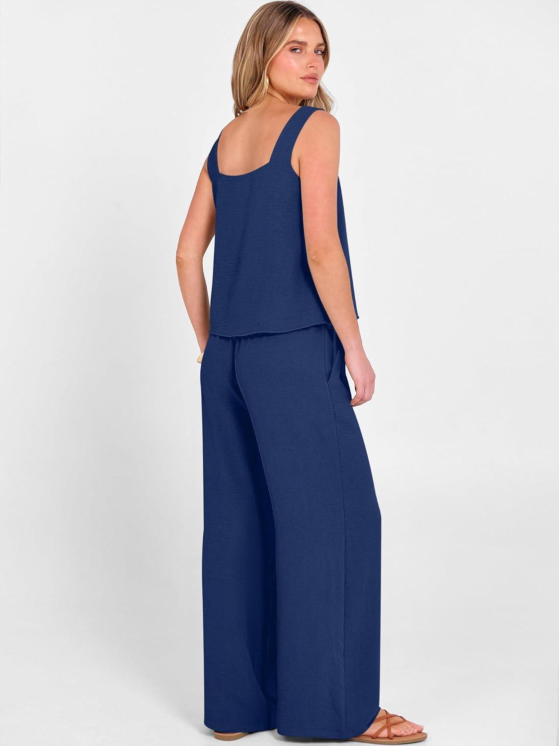 imageANRABESS 2 Piece Sets for Women Outfits Lounge Matching Casual Travel Wide Leg Pants Crop Top Summer Vacation Beach ClothesNavy Blue