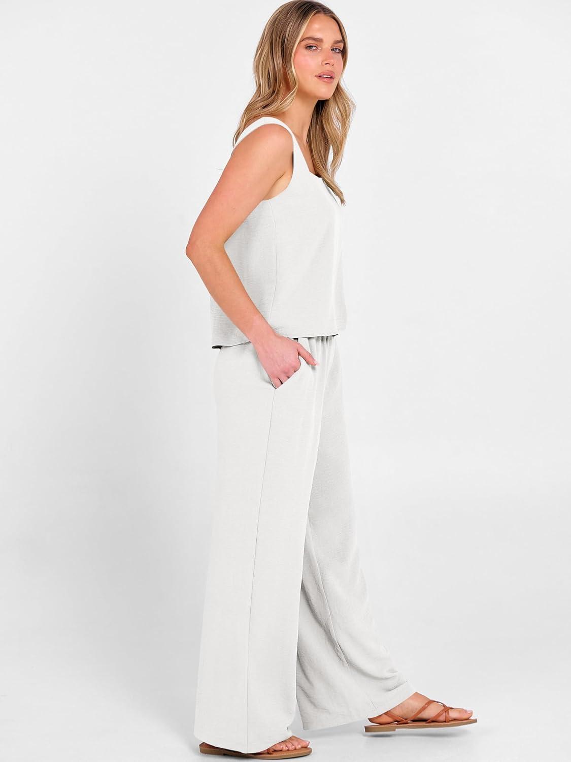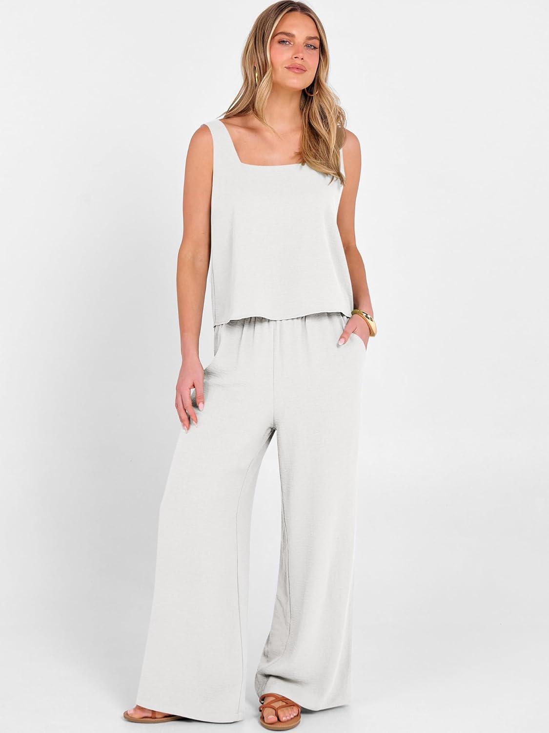 imageANRABESS 2 Piece Sets for Women Outfits Lounge Matching Casual Travel Wide Leg Pants Crop Top Summer Vacation Beach ClothesWhite