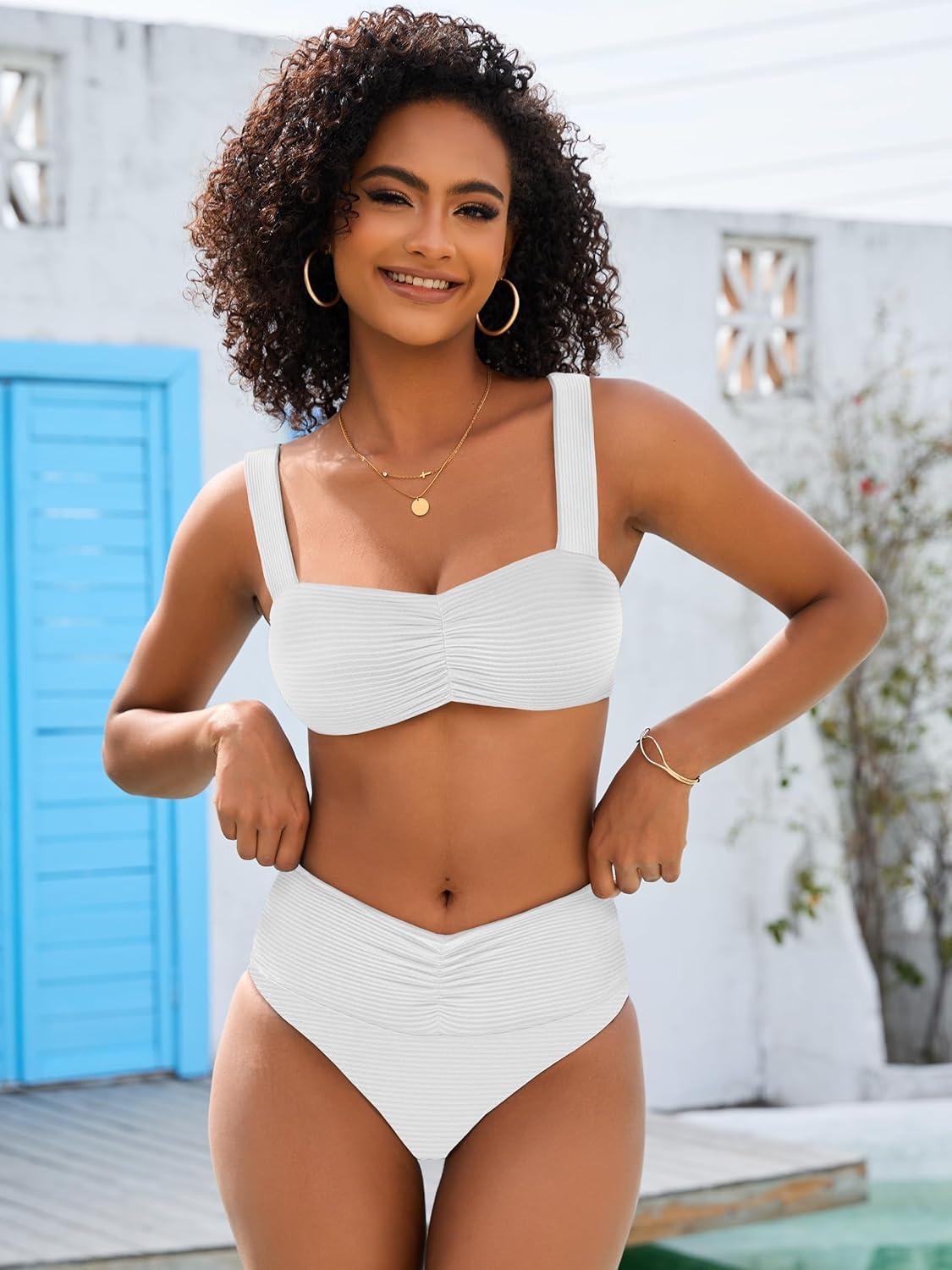 Be the first to review “ANRABESS Bathing Suit for Women Tummy Control Bikini Set 2026 Beach Front Ruched Mid Waist Swimsuit with Adjustable Straps(White)”