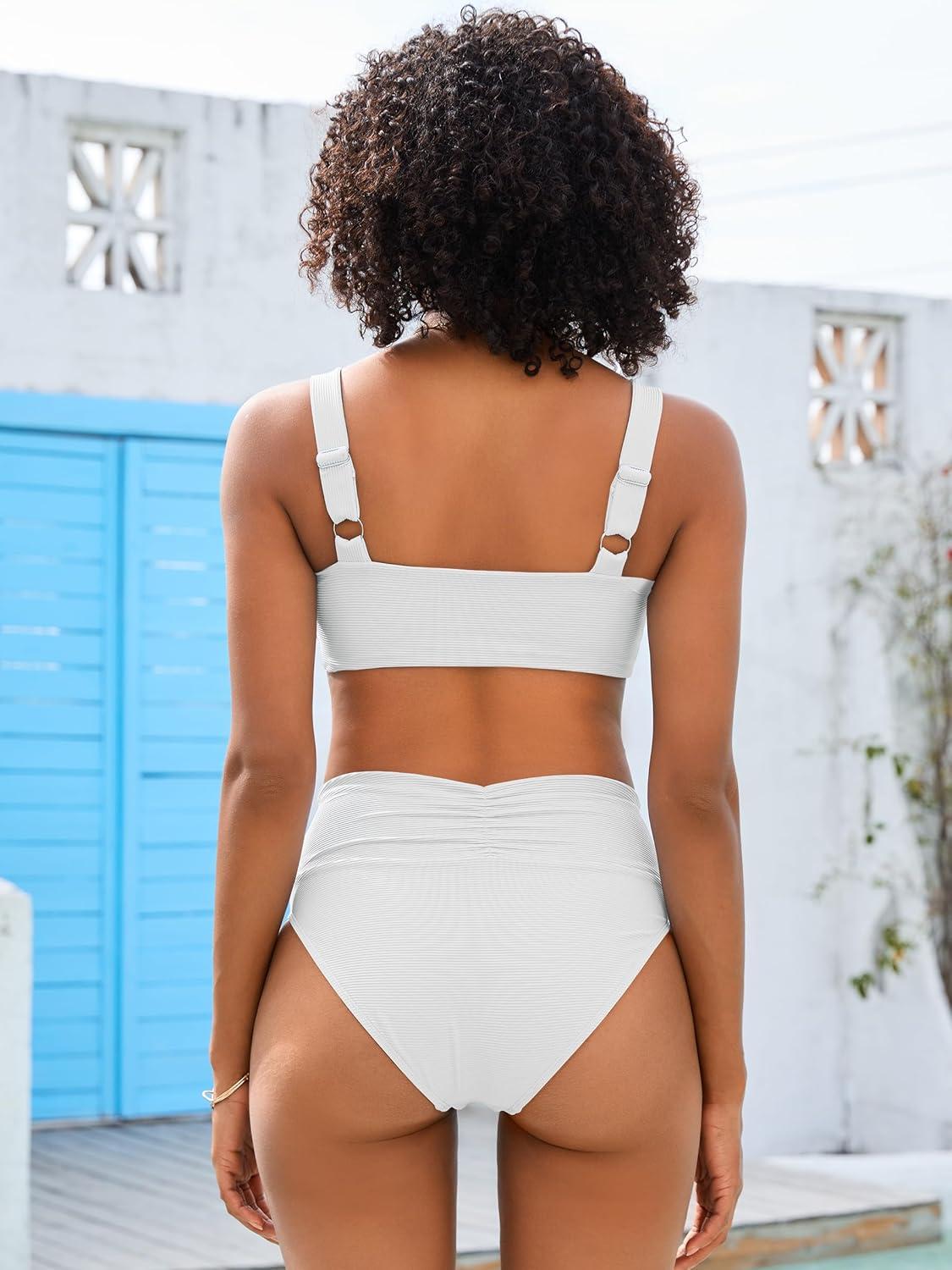 imageANRABESS Bathing Suit for Women Tummy Control Bikini Set 2026 Beach Front Ruched Mid Waist Swimsuit with Adjustable StrapsWhite