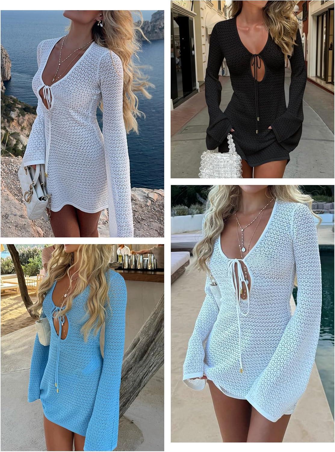 ANRABESS Beach Cover Ups for Women Crochet Swimsuit Bathing Suit Swimwear Bikini Mesh Knit Dress 2025 Summer Vacation Outfits(White)