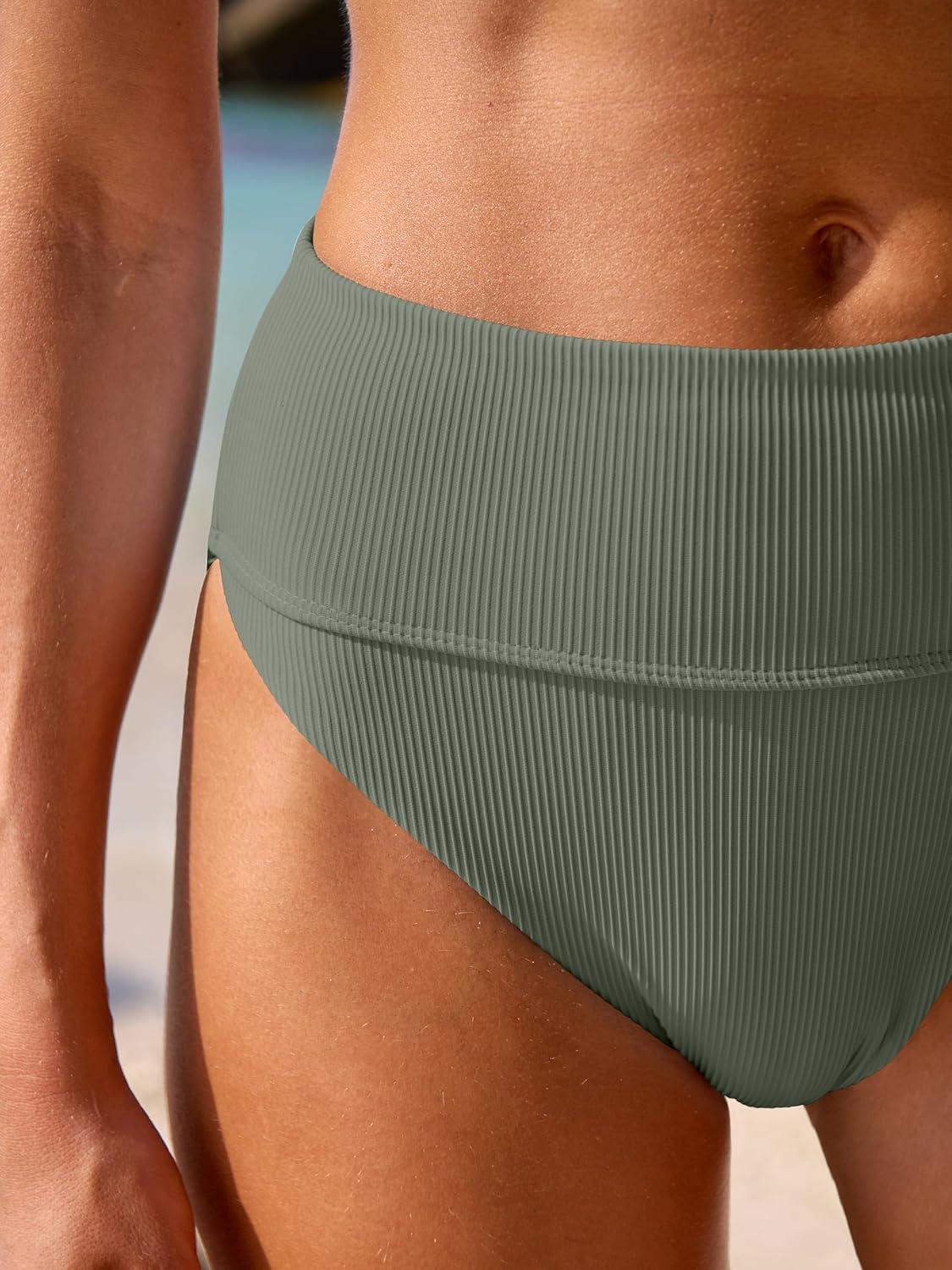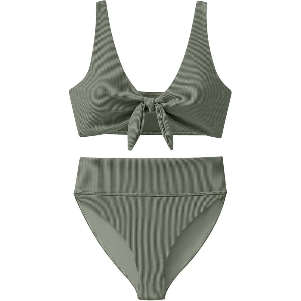 ANRABESS Bikini Sets for Women Summer High Waisted 2 Piece Bathing Suit Ribbed Tie Knot Swimsuit 2026 Beach Vacation Swimwear(Army Green)