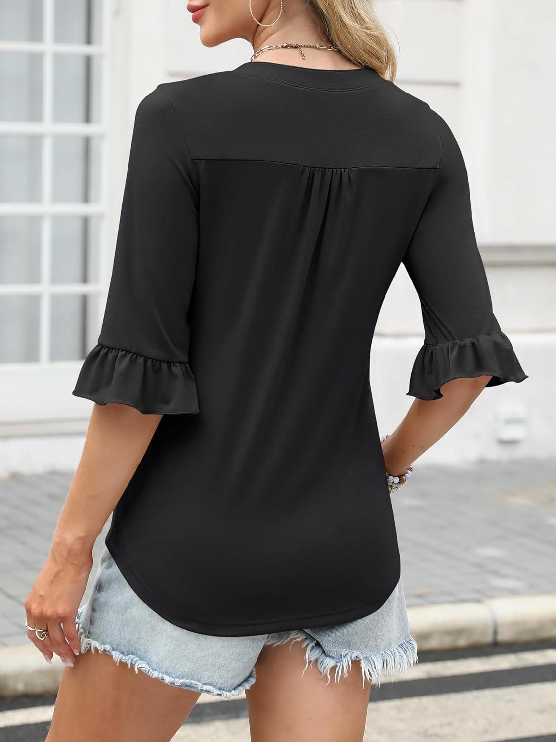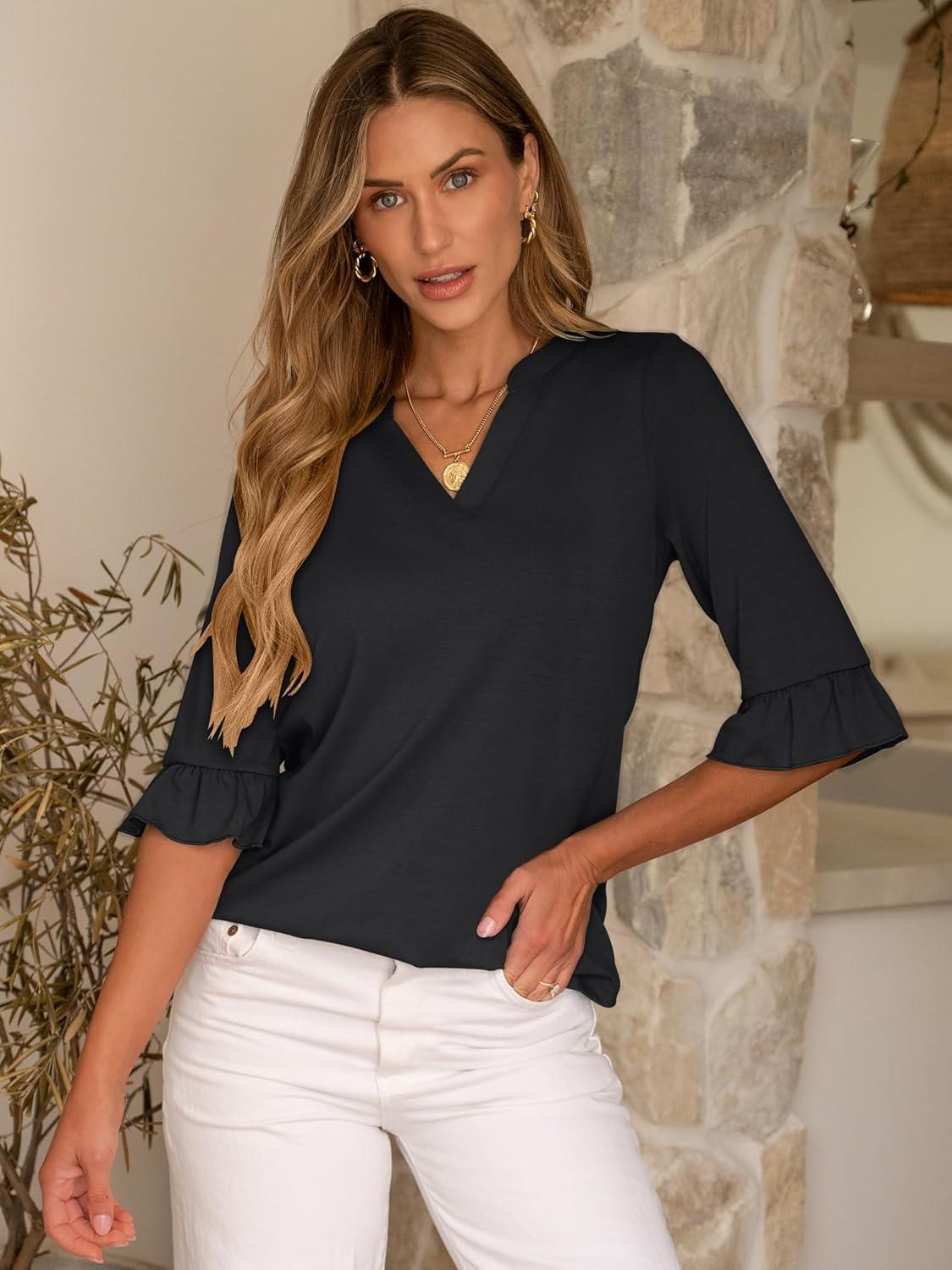 ANRABESS Blouses for Women Dressy Casual 3/4 Sleeve V Neck Shirts Business Work Tunic Tops 2026 Fall Outfits Clothes(Black)