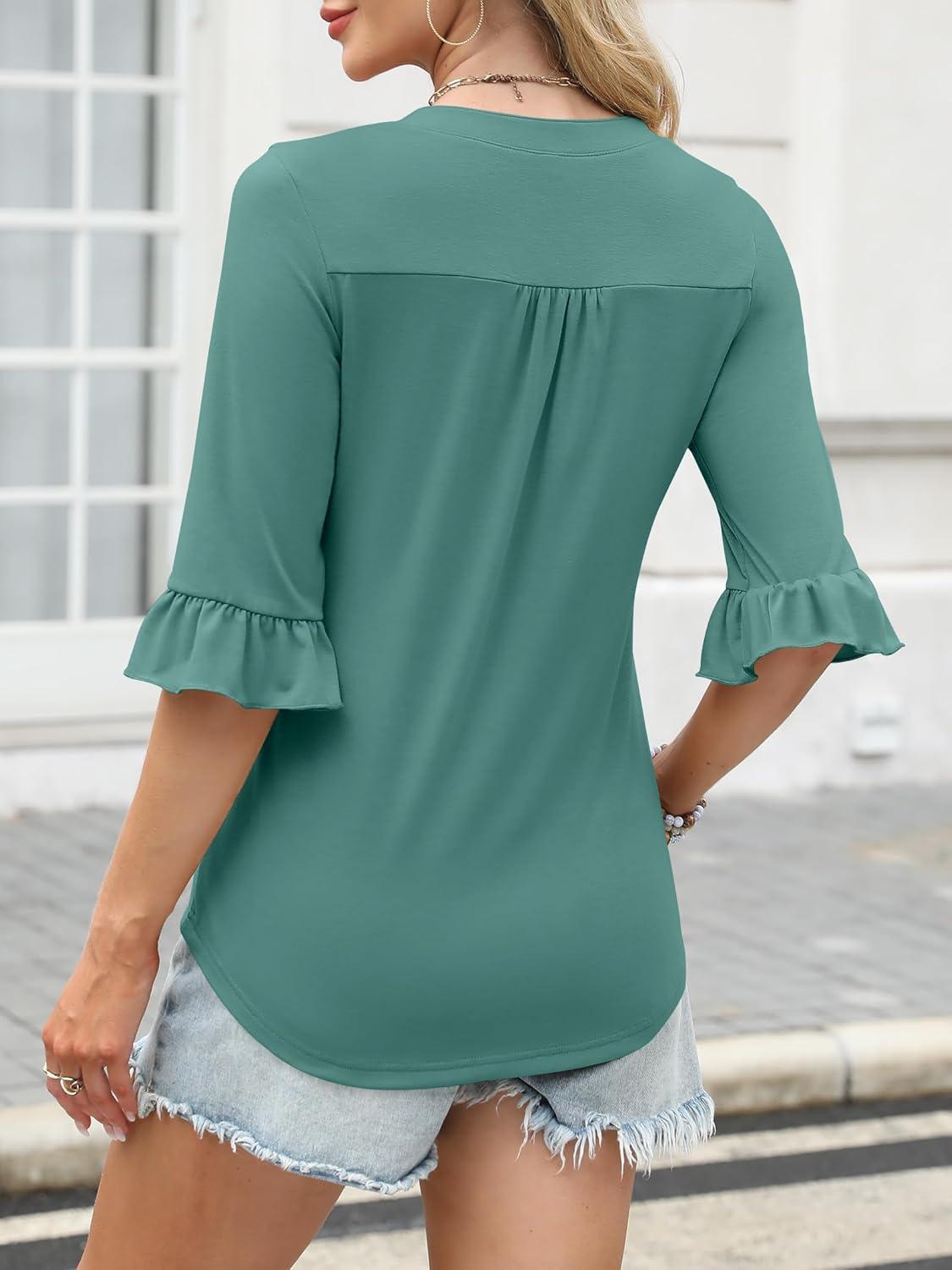 ANRABESS Blouses for Women Dressy Casual 3/4 Sleeve V Neck Shirts Business Work Tunic Tops 2026 Fall Outfits Clothes(Cadet Blue Green)