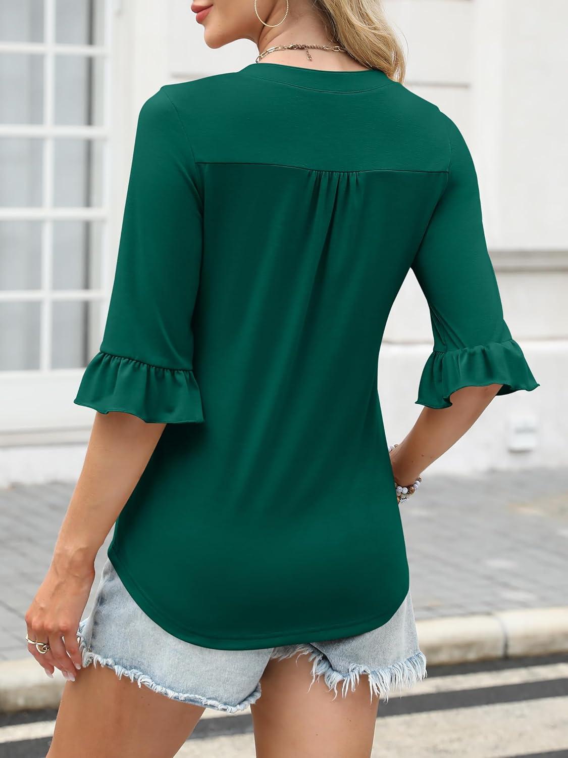 ANRABESS Blouses for Women Dressy Casual 3/4 Sleeve V Neck Shirts Business Work Tunic Tops 2026 Fall Outfits Clothes(Deep Green)