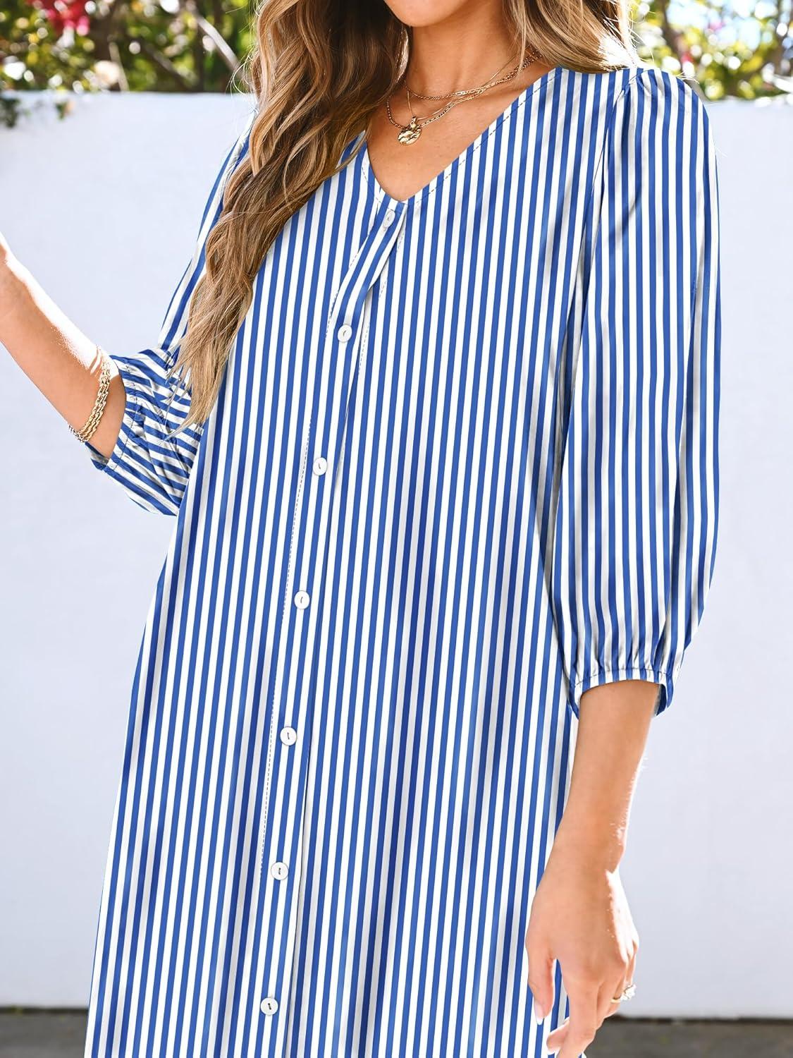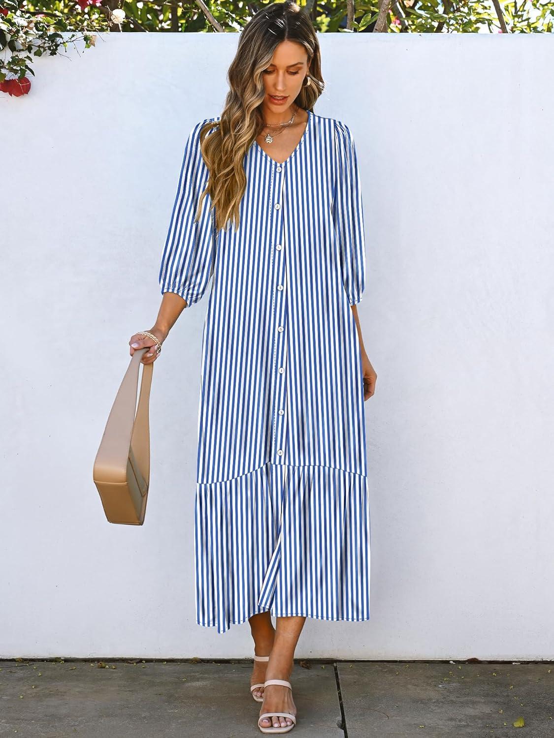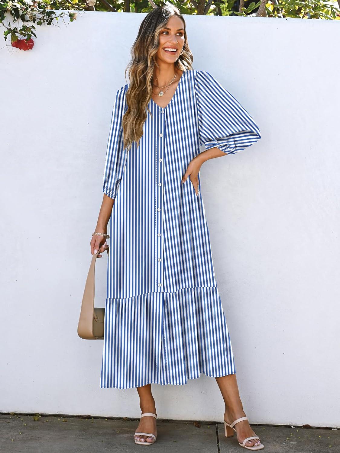 Be the first to review “ANRABESS Boho Maxi Dresses for Women Summer Puff Sleeve V Neck Flowy Long Casual Dress with Pockets 2025 Vacation Outfits(Striped Blue)”
