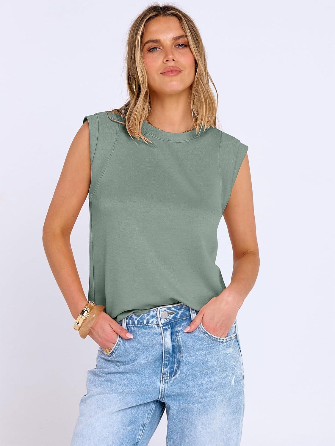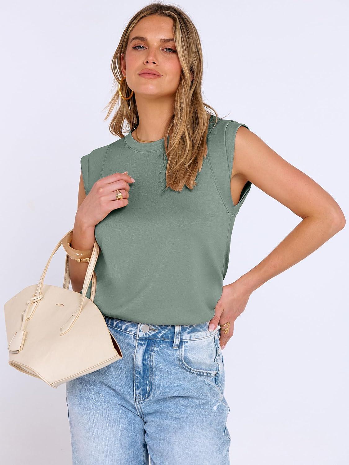 ANRABESS Business Casual Tops for Womens Cap Sleeve Summer Dressy Shirts 2026 Trendy Work Office Outfits Clothing(Light Green)