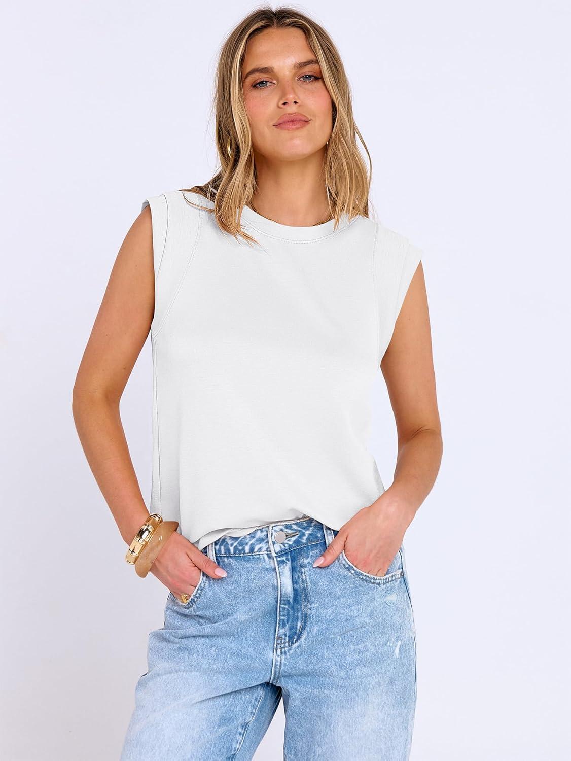 ANRABESS Business Casual Tops for Womens Cap Sleeve Summer Dressy Shirts 2026 Trendy Work Office Outfits Clothing(White)