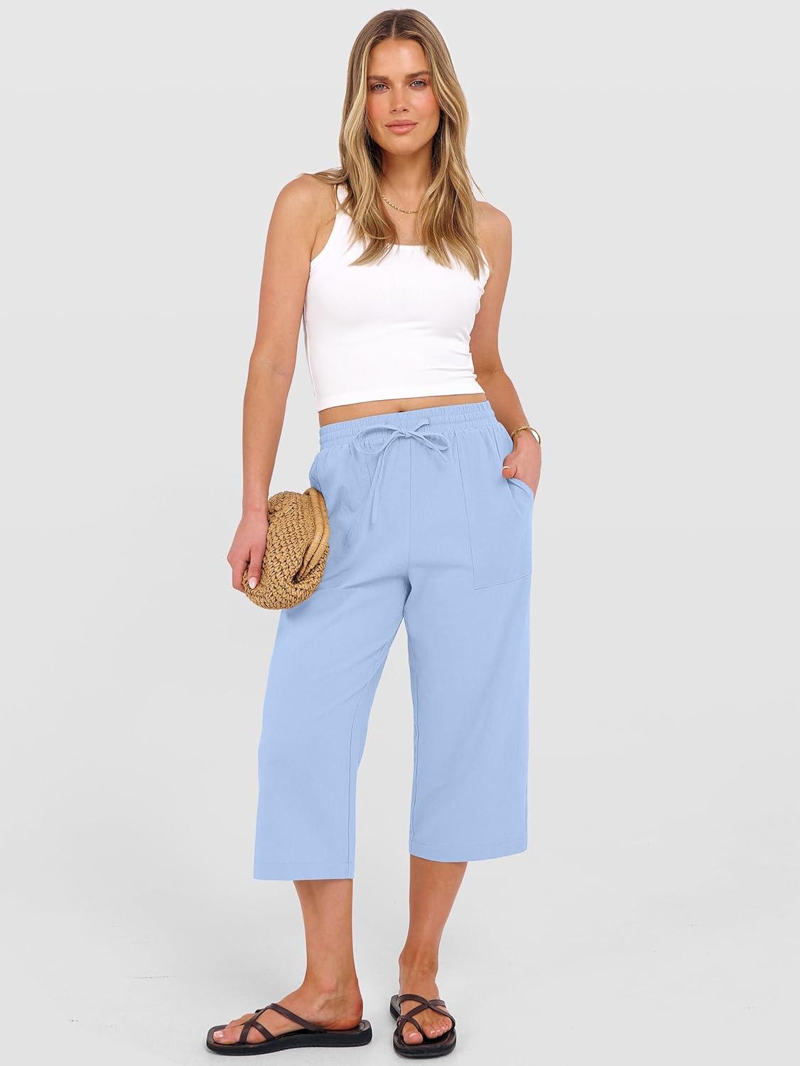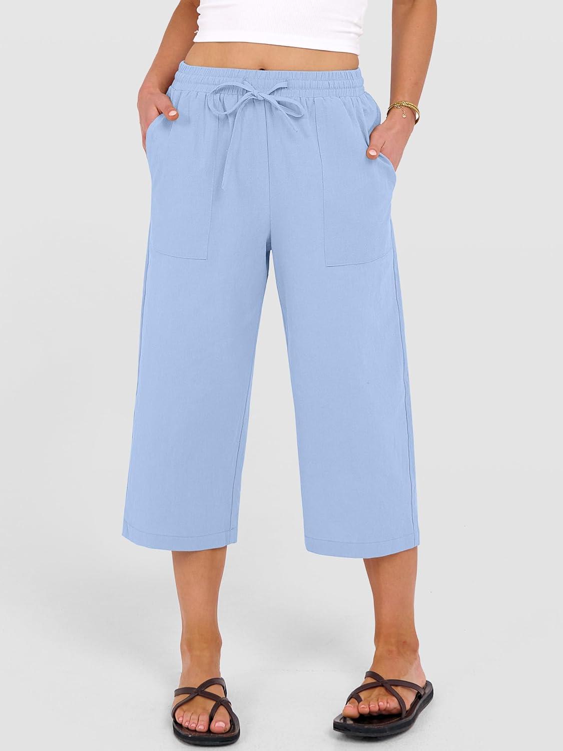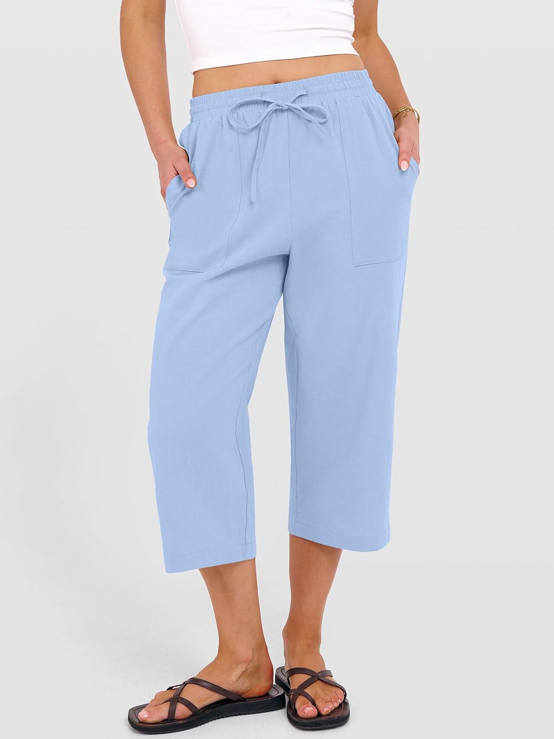 ANRABESS Capris Pants for Women Summer Casual Loose Drawstring Elastic High Waist Straight 2026 Lounge Beach Cropped Trousers(Sky Blue)