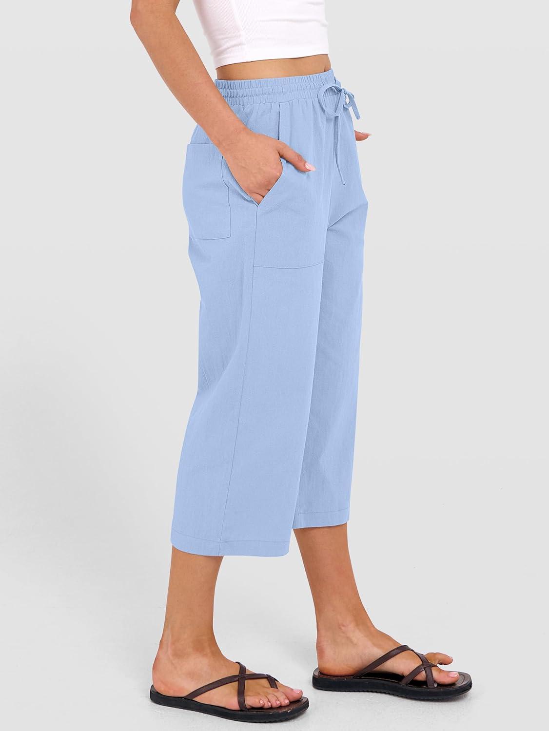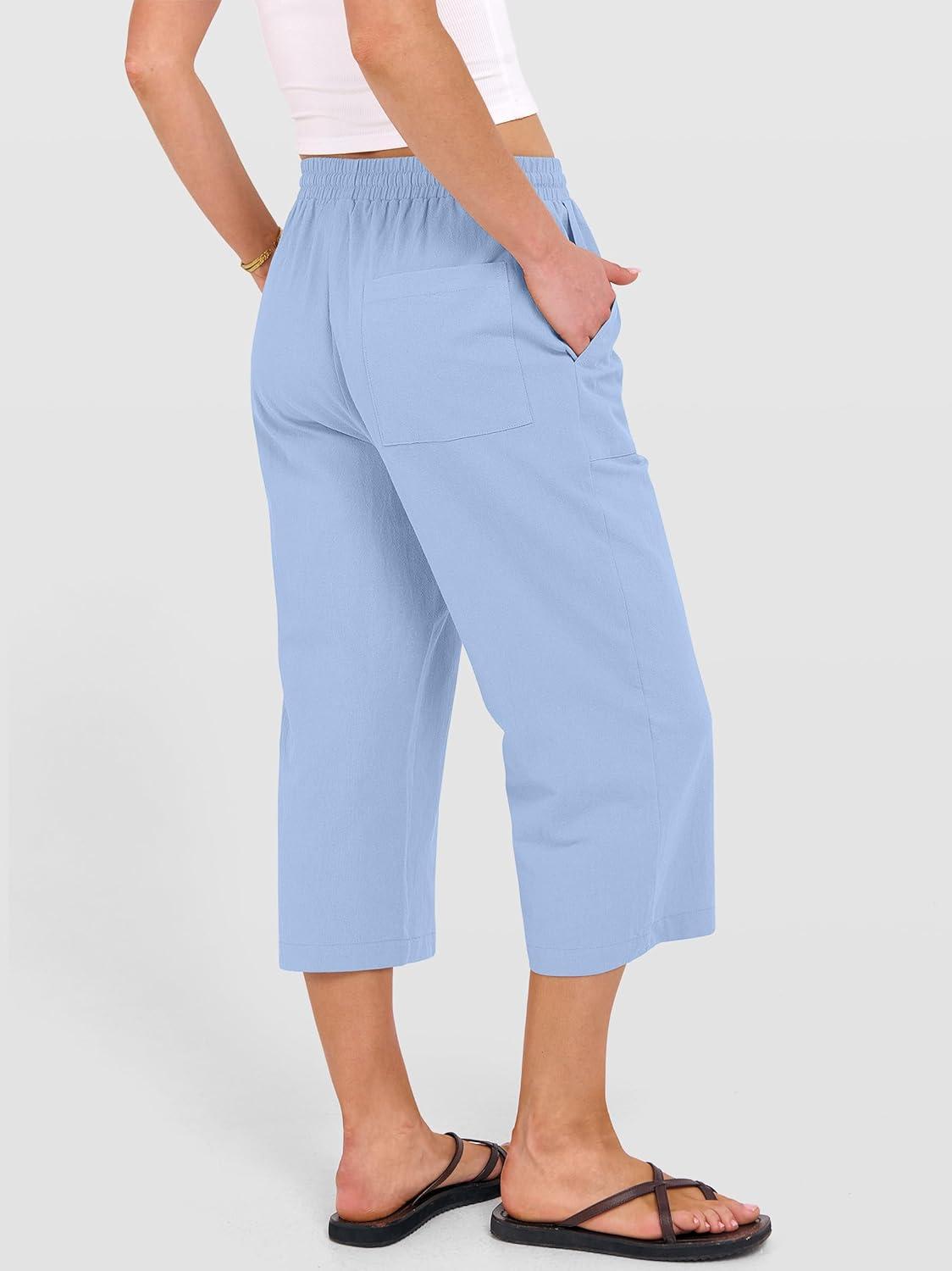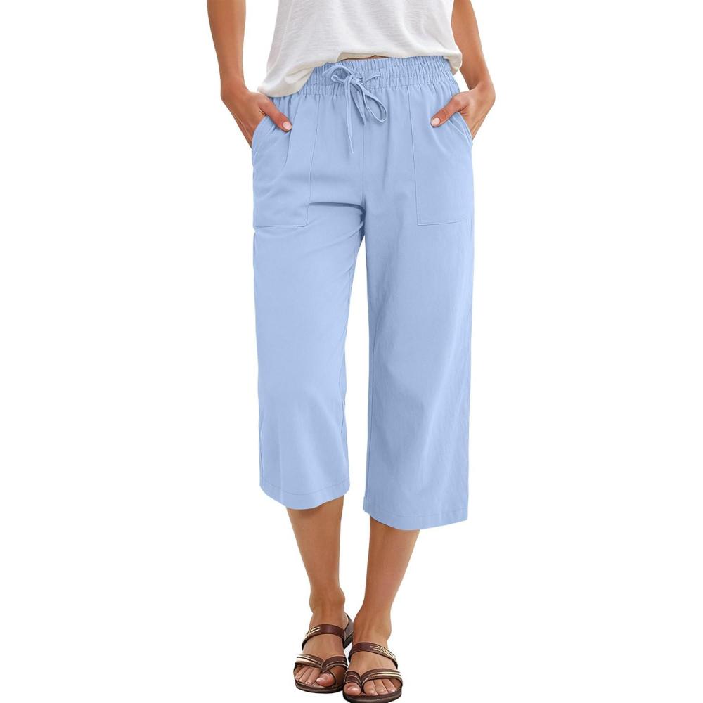 ANRABESS Capris Pants for Women Summer Casual Loose Drawstring Elastic High Waist Straight 2026 Lounge Beach Cropped Trousers(Sky Blue)