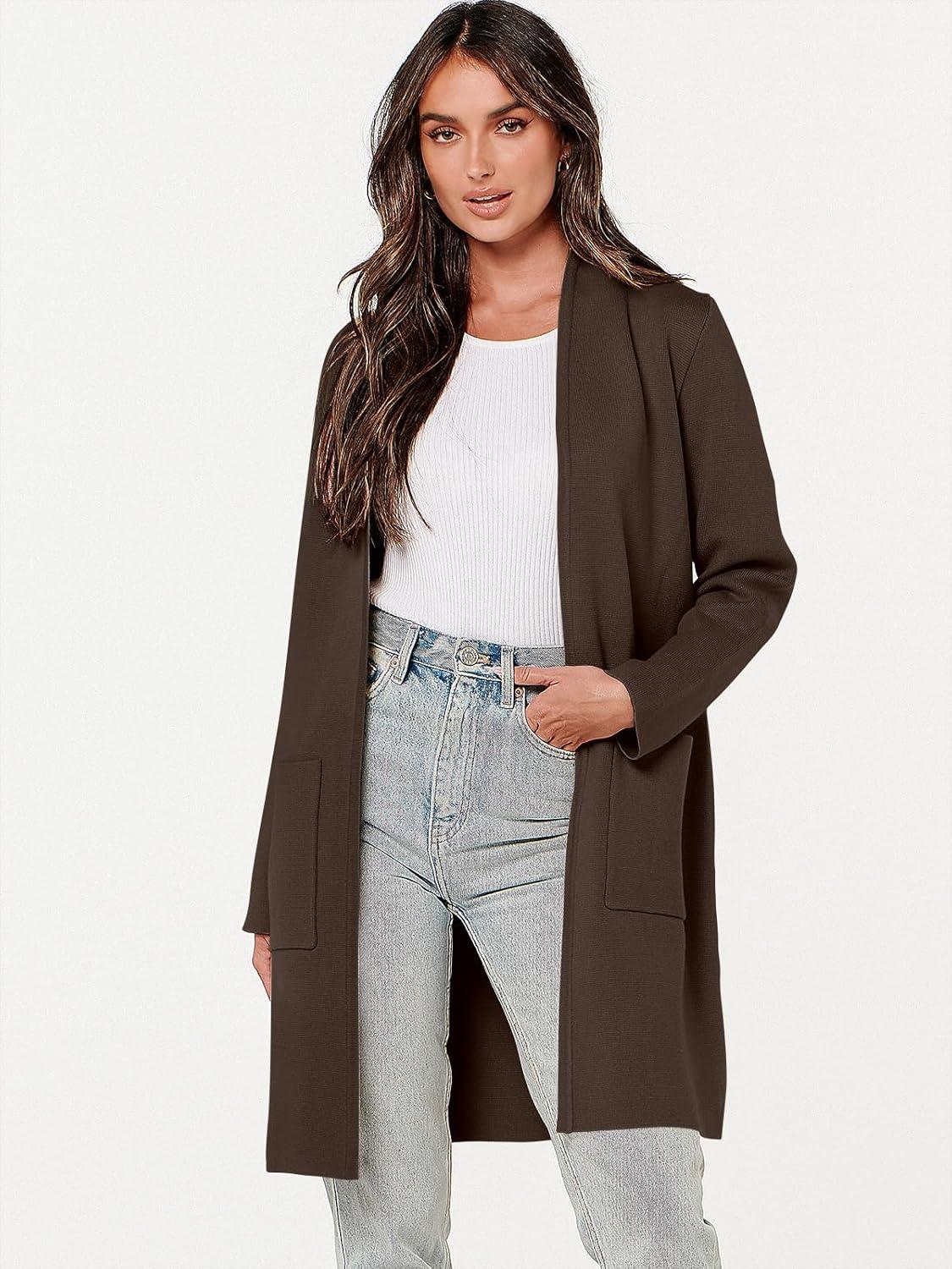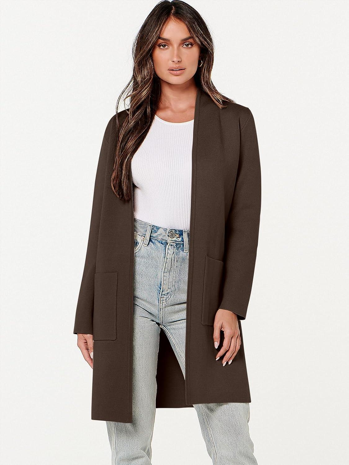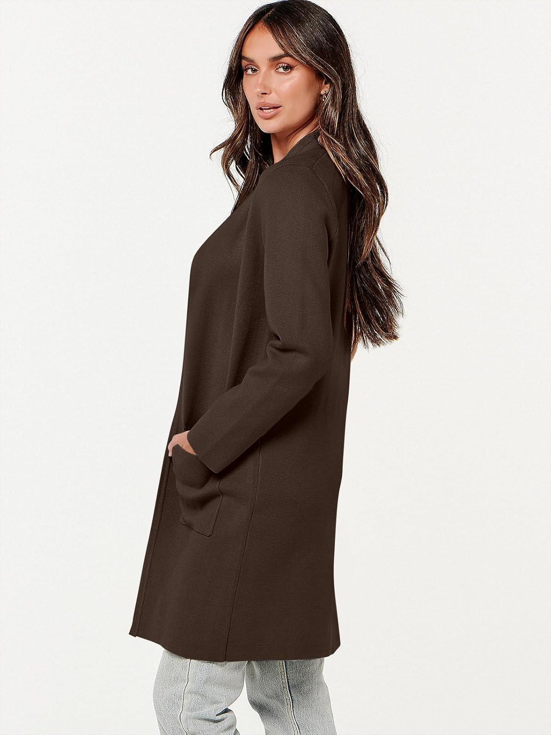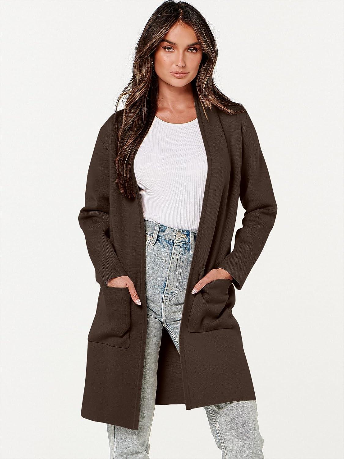 ANRABESS Cardigan Sweater for Women Casual 2025 Fall Fashion Coat Long Sleeve Open Front Knit Coatigan Outwear(Coffee)