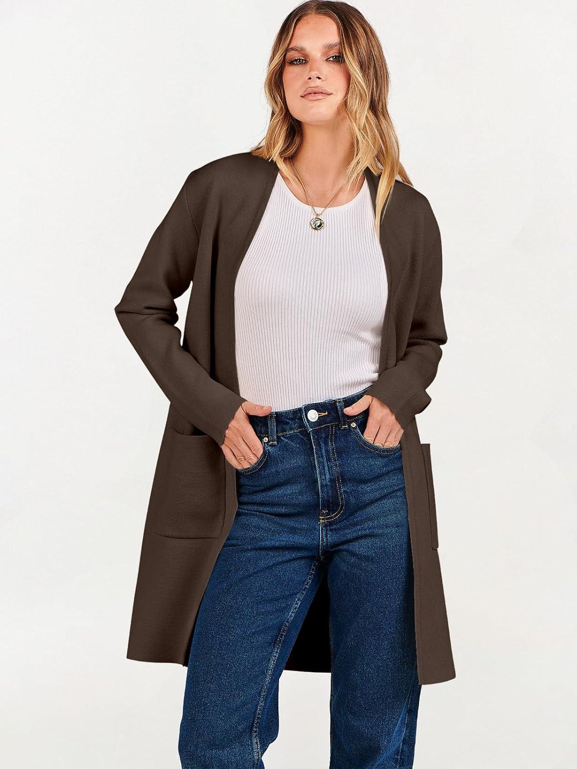imageANRABESS Cardigan Sweater for Women Casual 2025 Fall Fashion Coat Long Sleeve Open Front Knit Coatigan OutwearCoffee