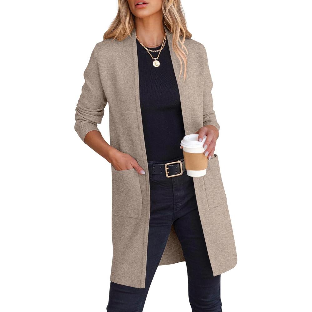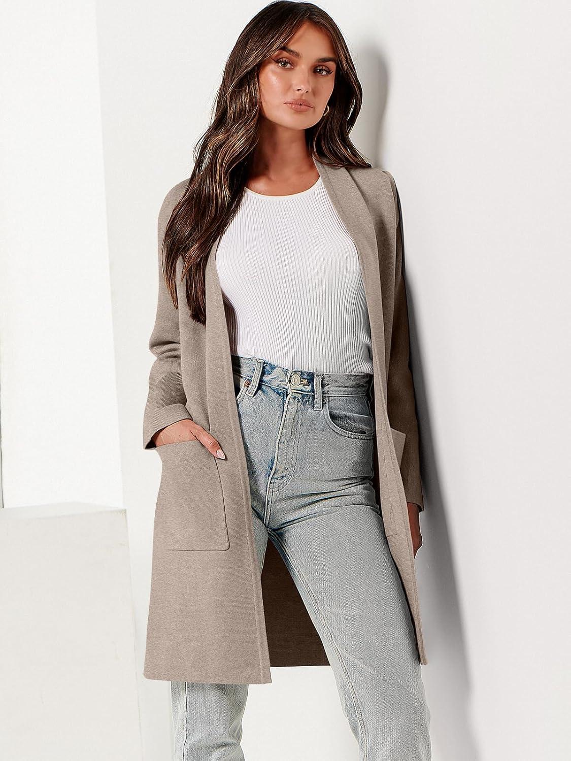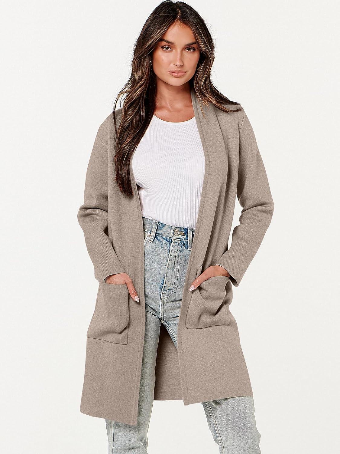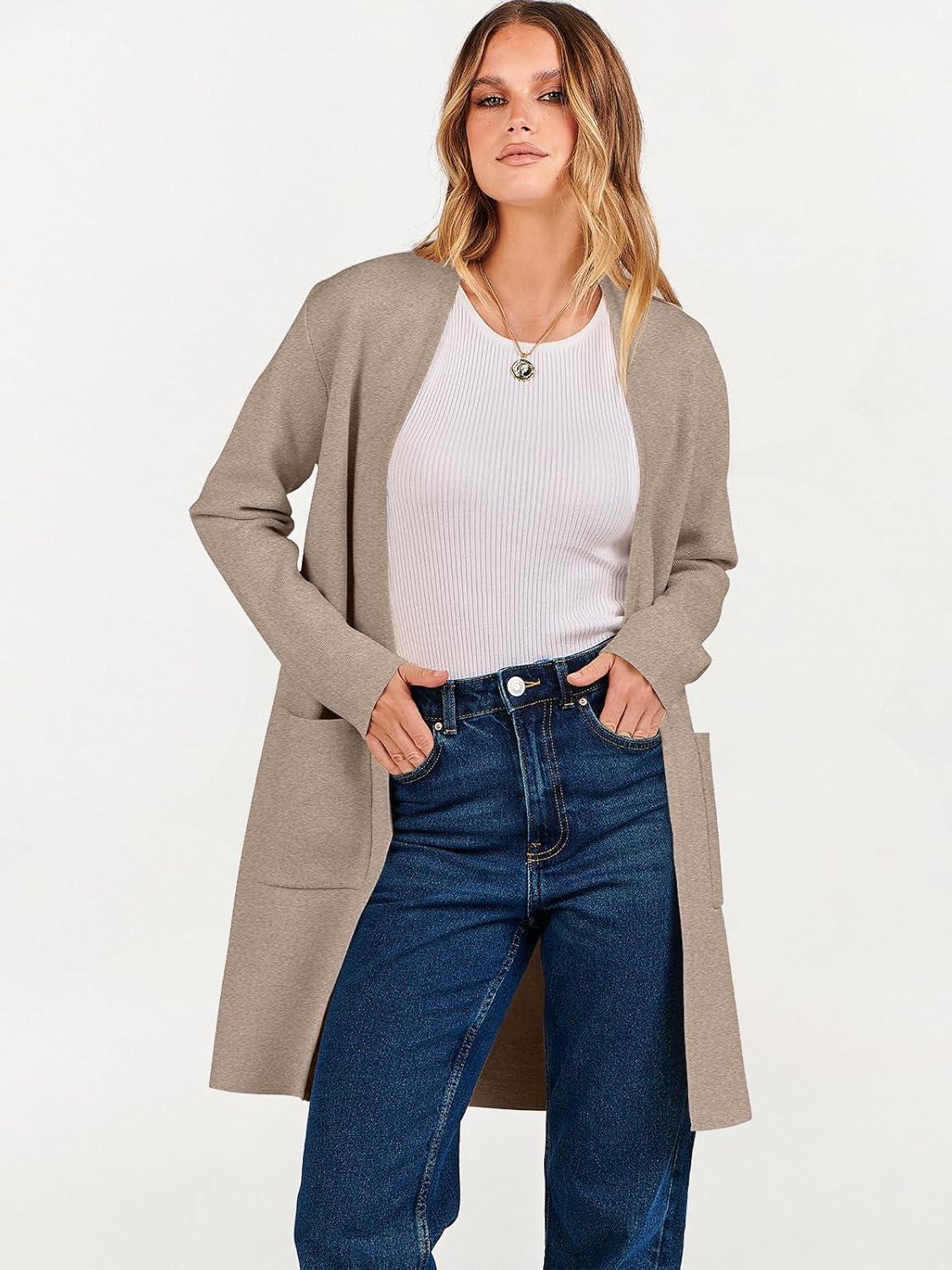 ANRABESS Cardigan Sweater for Women Casual 2025 Fall Fashion Coat Long Sleeve Open Front Knit Coatigan Outwear(Red Khaki)