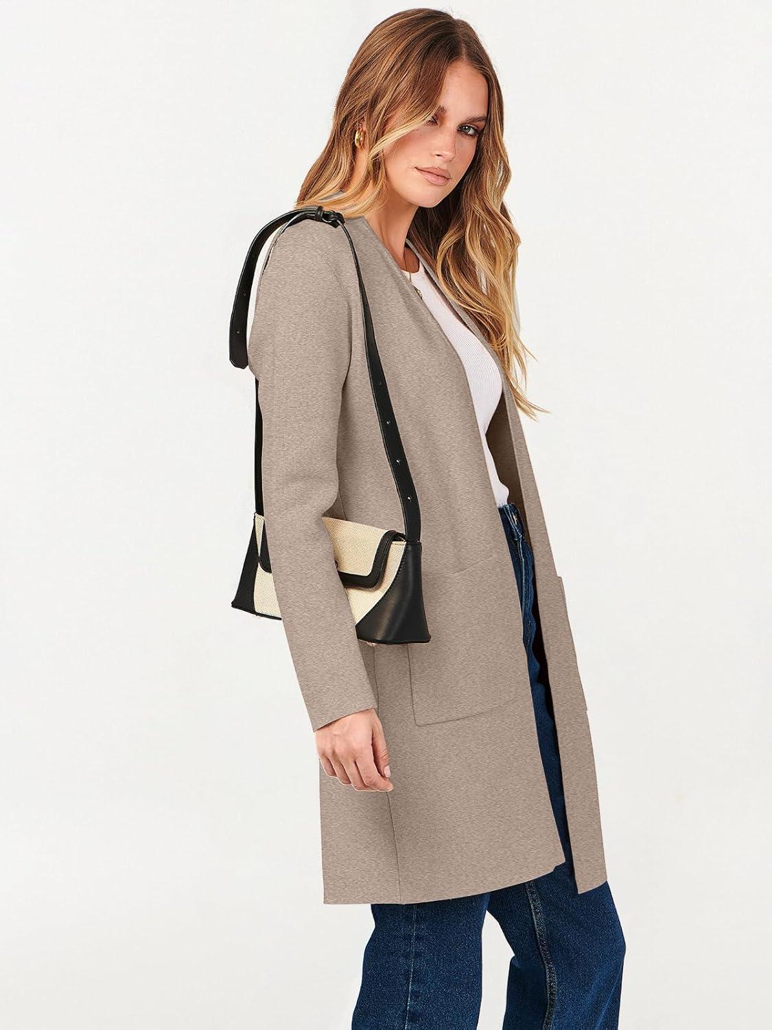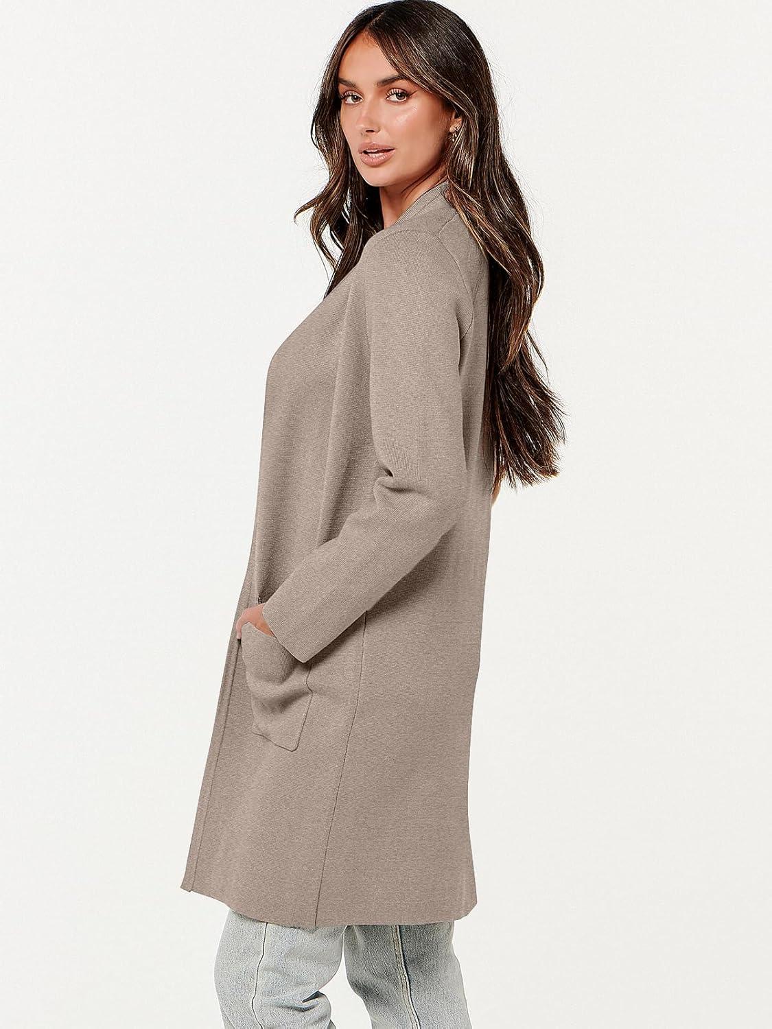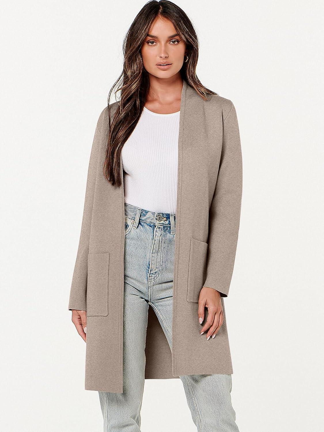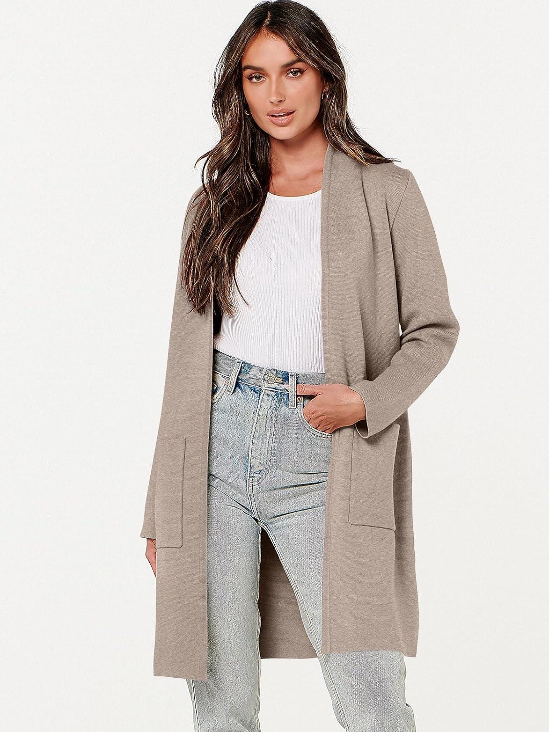 ANRABESS Cardigan Sweater for Women Casual 2025 Fall Fashion Coat Long Sleeve Open Front Knit Coatigan Outwear(Red Khaki)