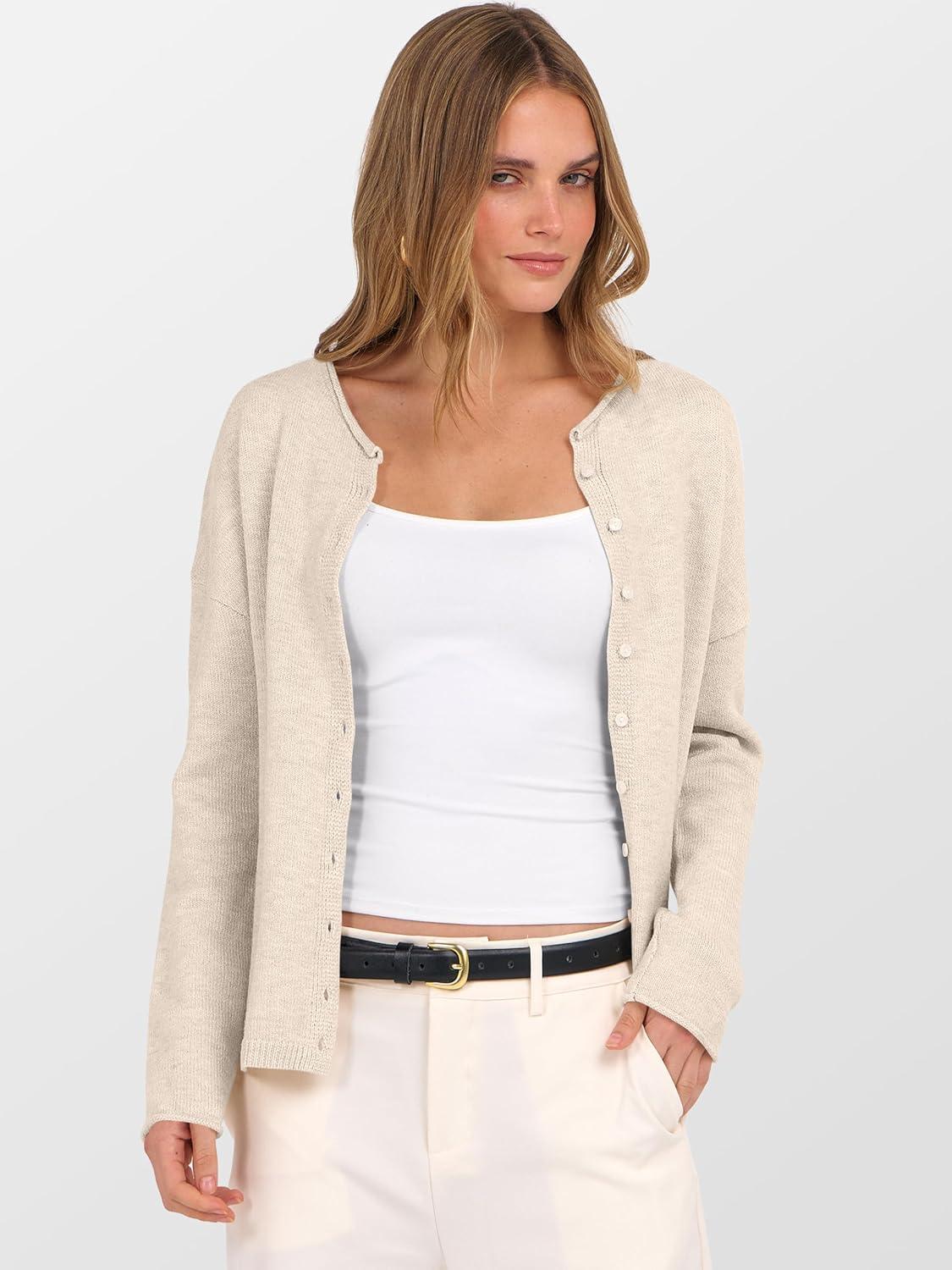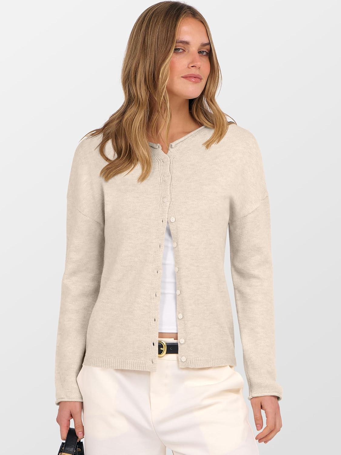 ANRABESS Cardigan Sweaters for Women Lightweight Button Down Long Sleeve Soft Y2k Trendy Casual 2025 Fall Fashion Outfits(Almond)