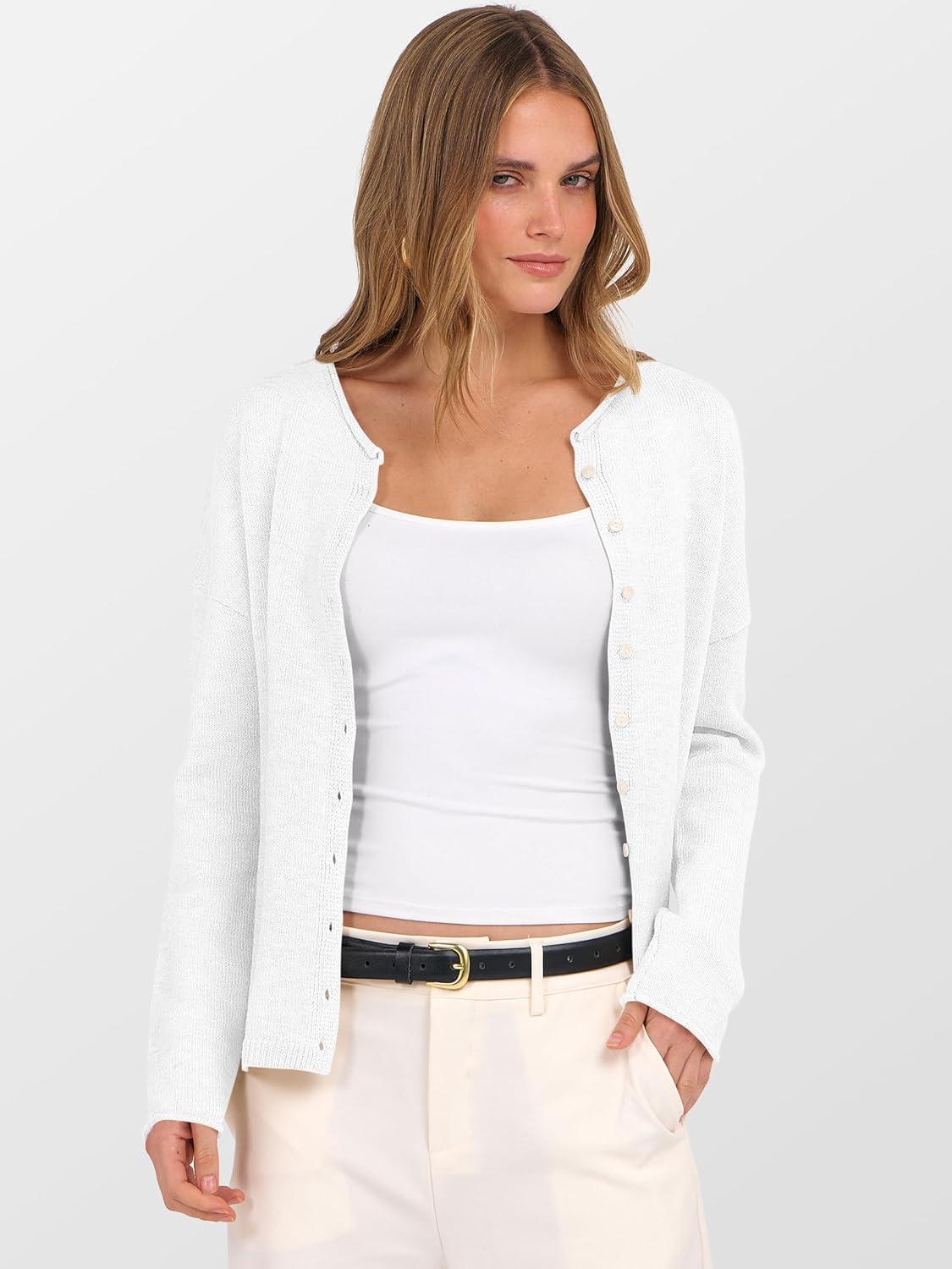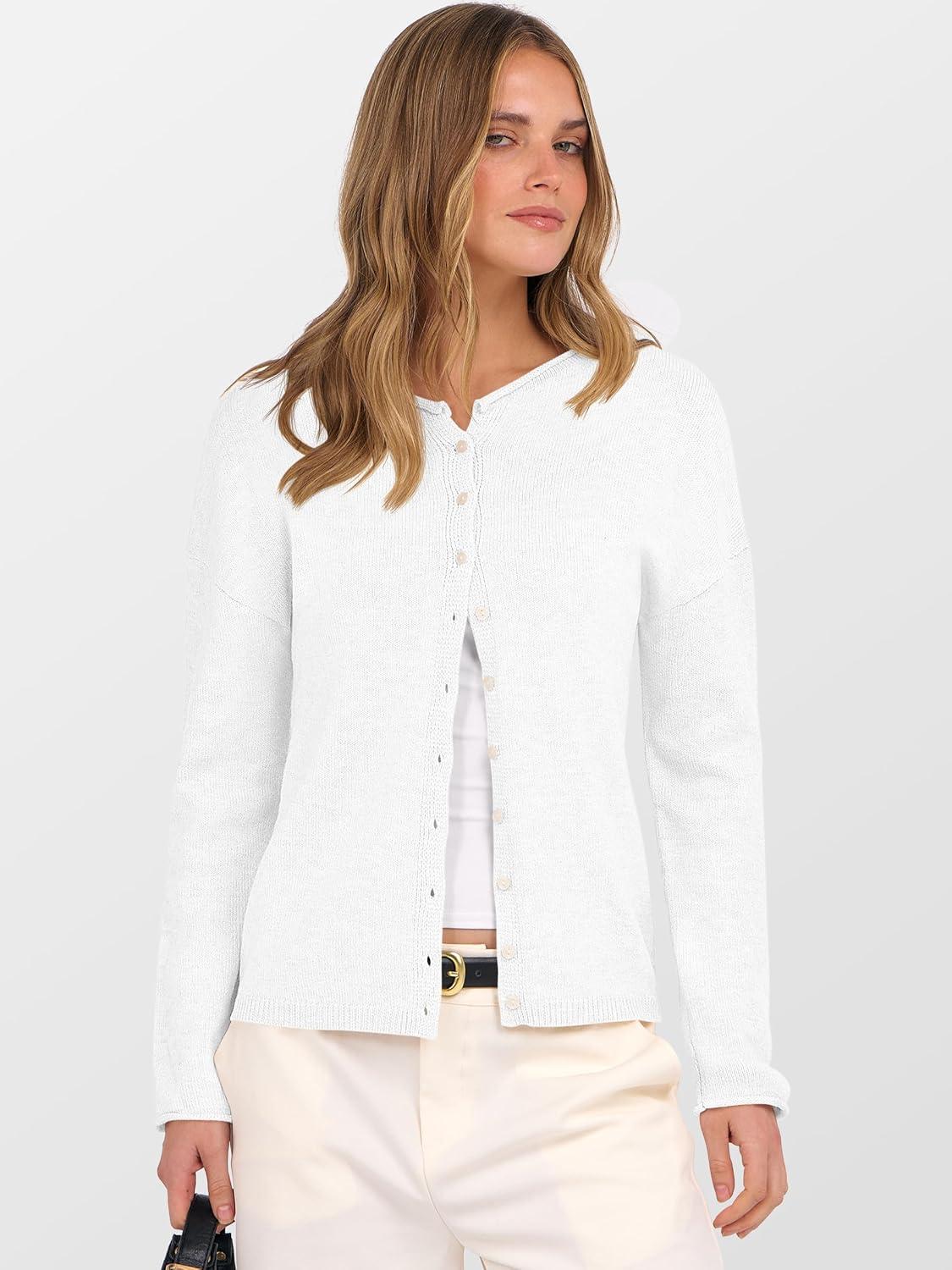 imageANRABESS Cardigan Sweaters for Women Lightweight Button Down Long Sleeve Soft Y2k Trendy Casual 2025 Fall Fashion OutfitsWhite