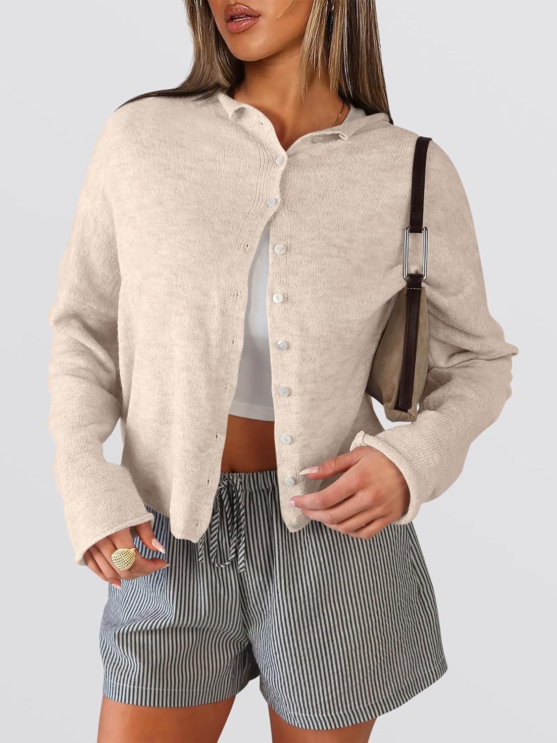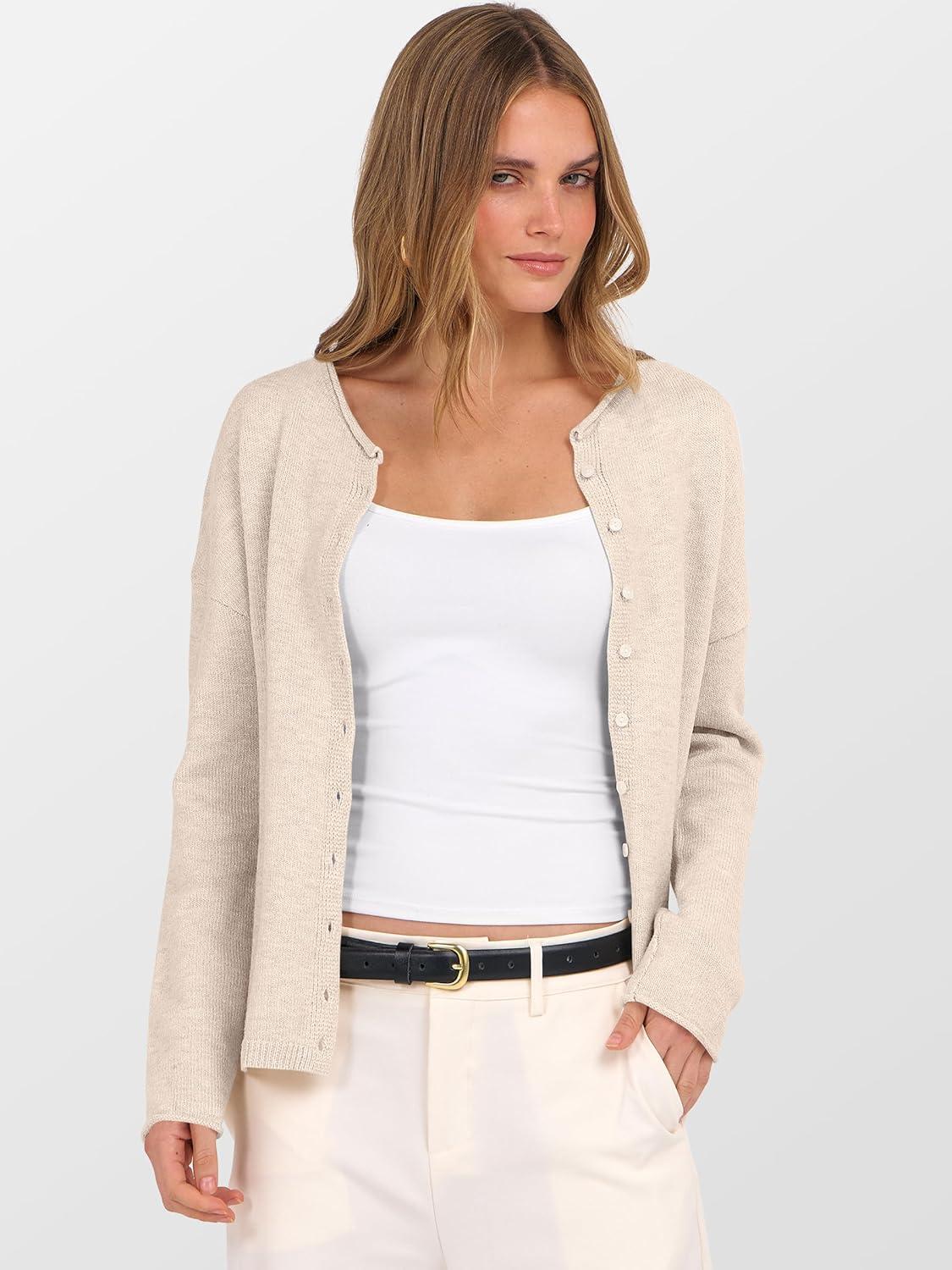 imageANRABESS Cardigan Sweaters for Women Oversized Button Down Long Sleeve Cardigans 2026 Spring Outfits Travel Holiday ClothesAlmond