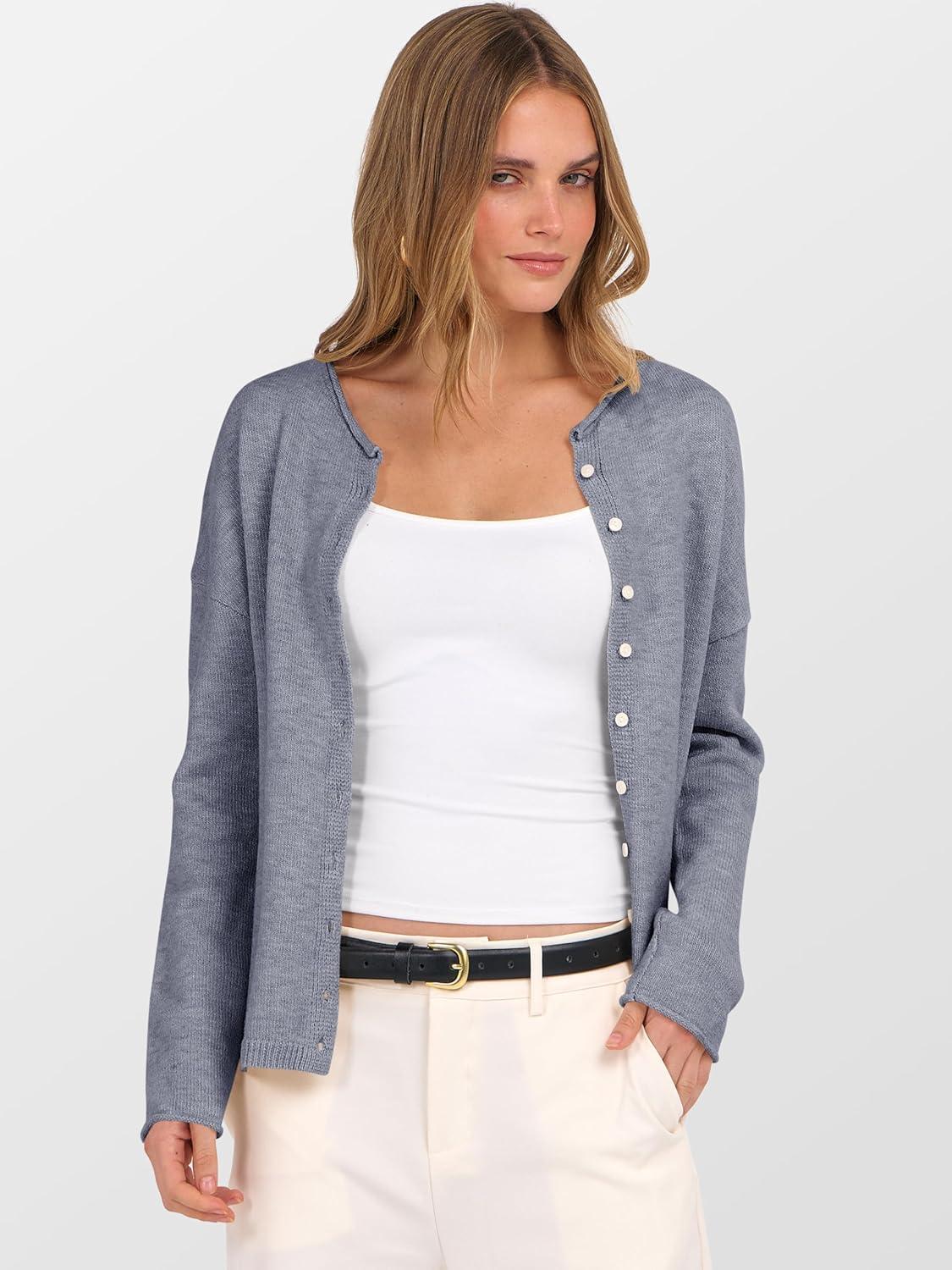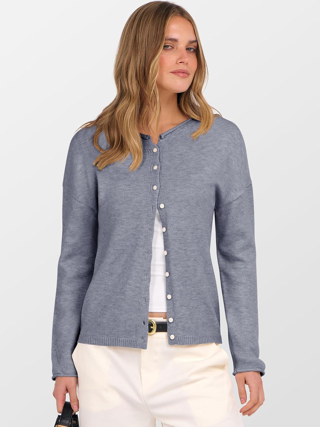 ANRABESS Cardigan Sweaters for Women Oversized Button Down Long Sleeve Cardigans 2026 Spring Outfits Travel Holiday Clothes(Dark Grey)