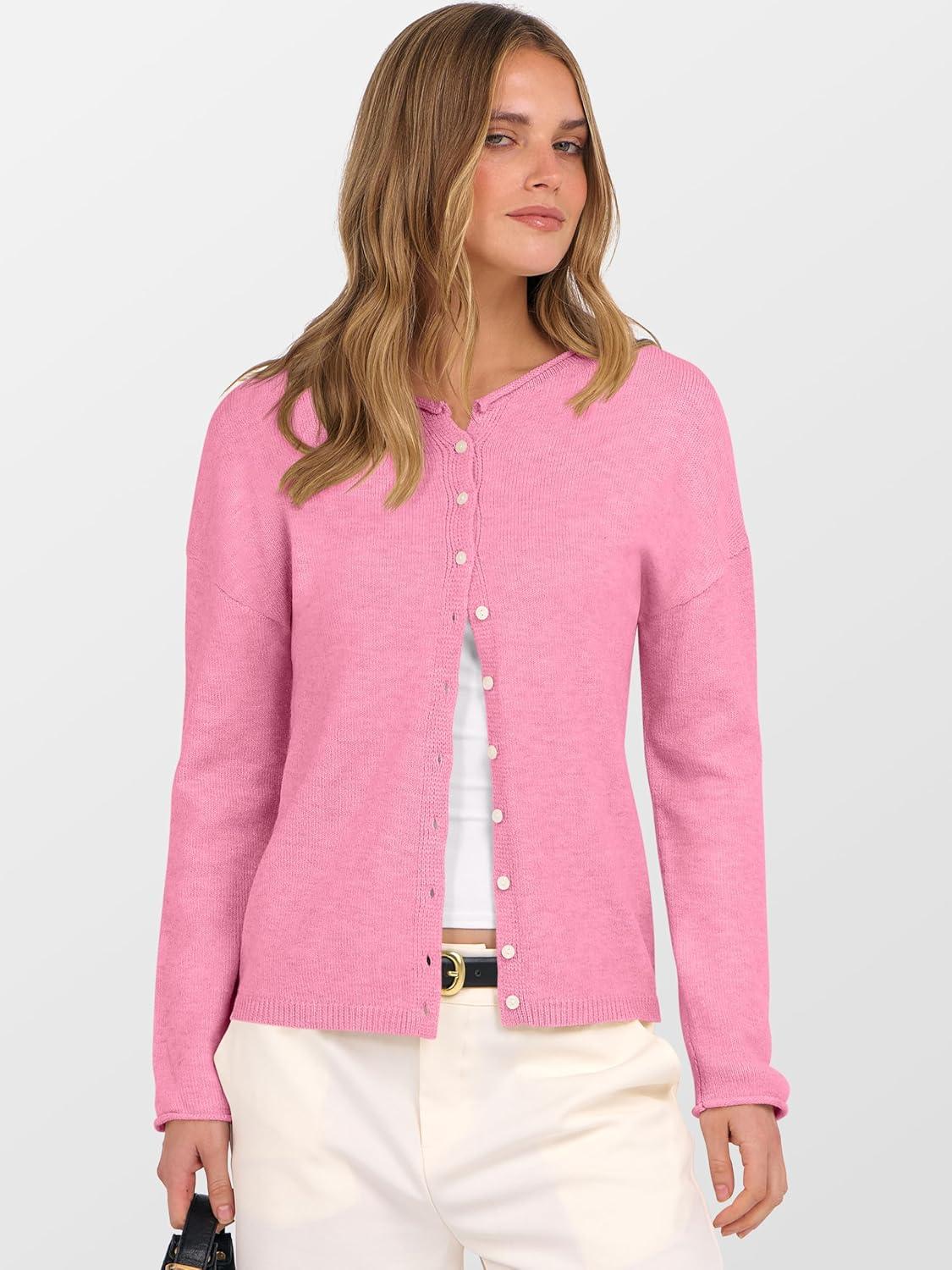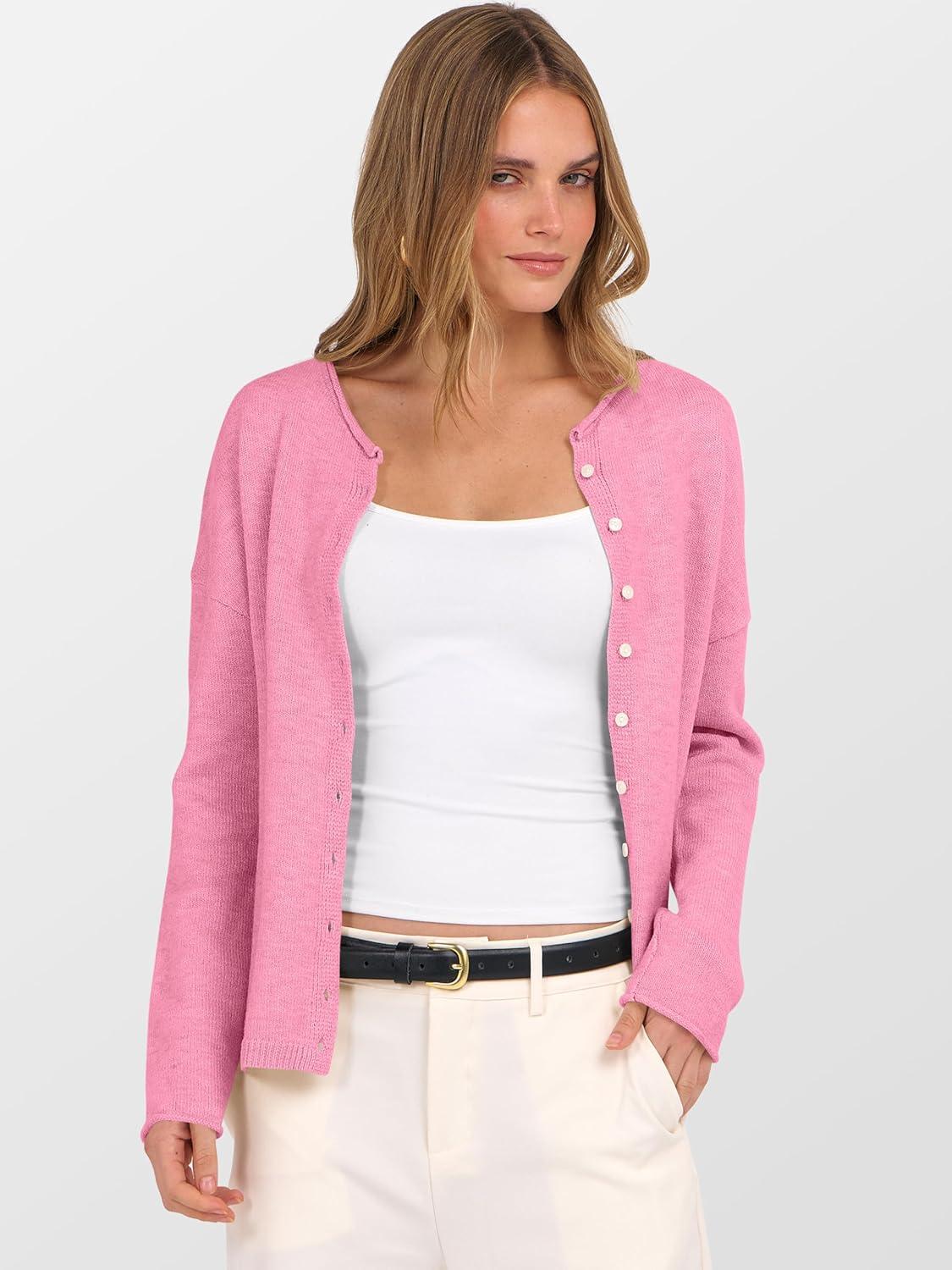 ANRABESS Cardigan Sweaters for Women Oversized Button Down Long Sleeve Cardigans 2026 Spring Outfits Travel Holiday Clothes(Pink)