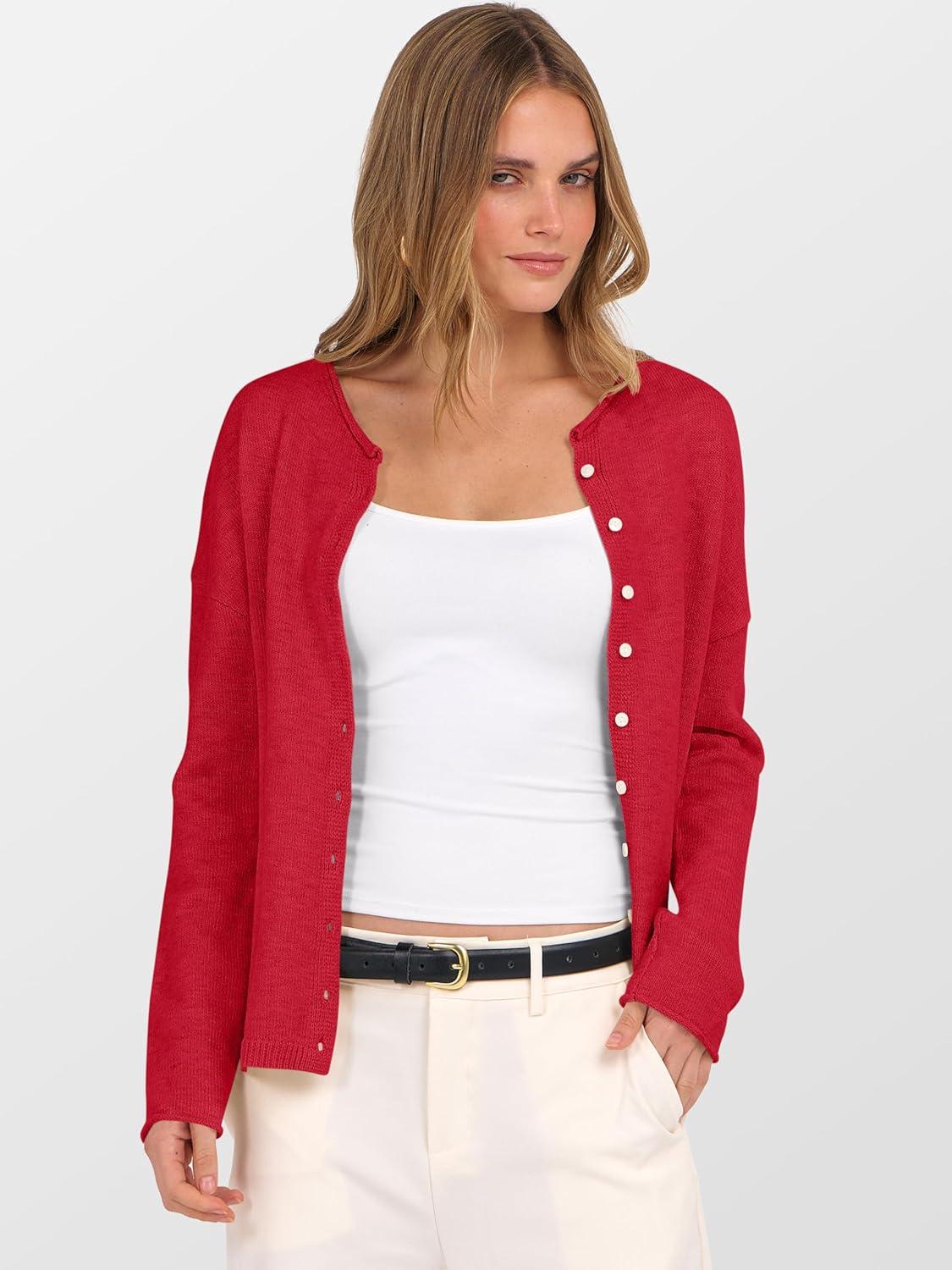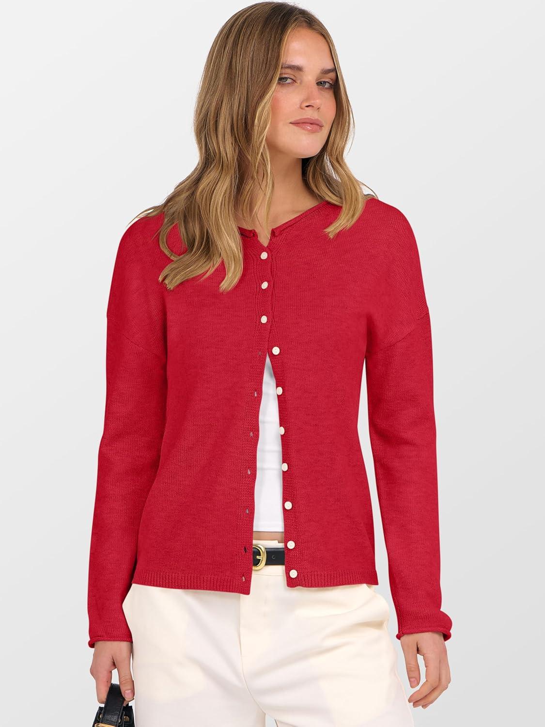 ANRABESS Cardigan Sweaters for Women Oversized Button Down Long Sleeve Cardigans 2026 Spring Outfits Travel Holiday Clothes(Red)
