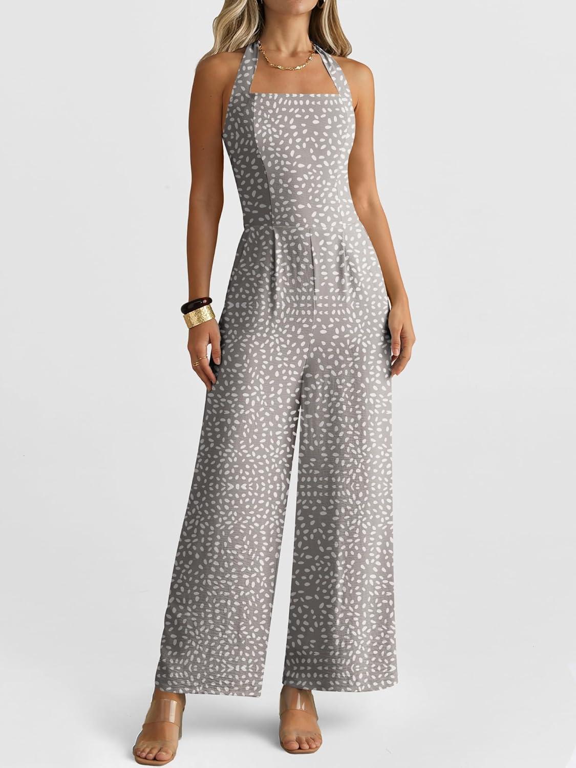 Be the first to review “ANRABESS Dressy Jumpsuits for Women Summer Casual Sleeveless Wide Leg Rmpers with Pockets One Piece Outfits 2026 Spring(Khaki Polka Dot)”