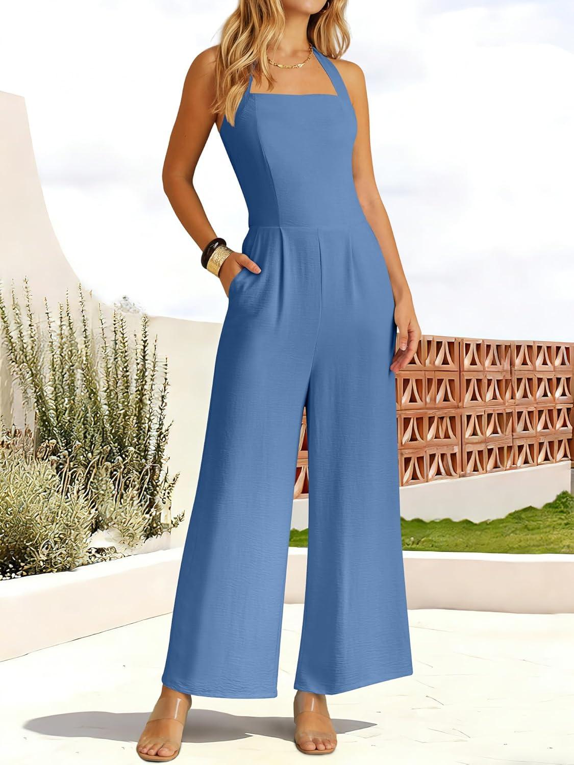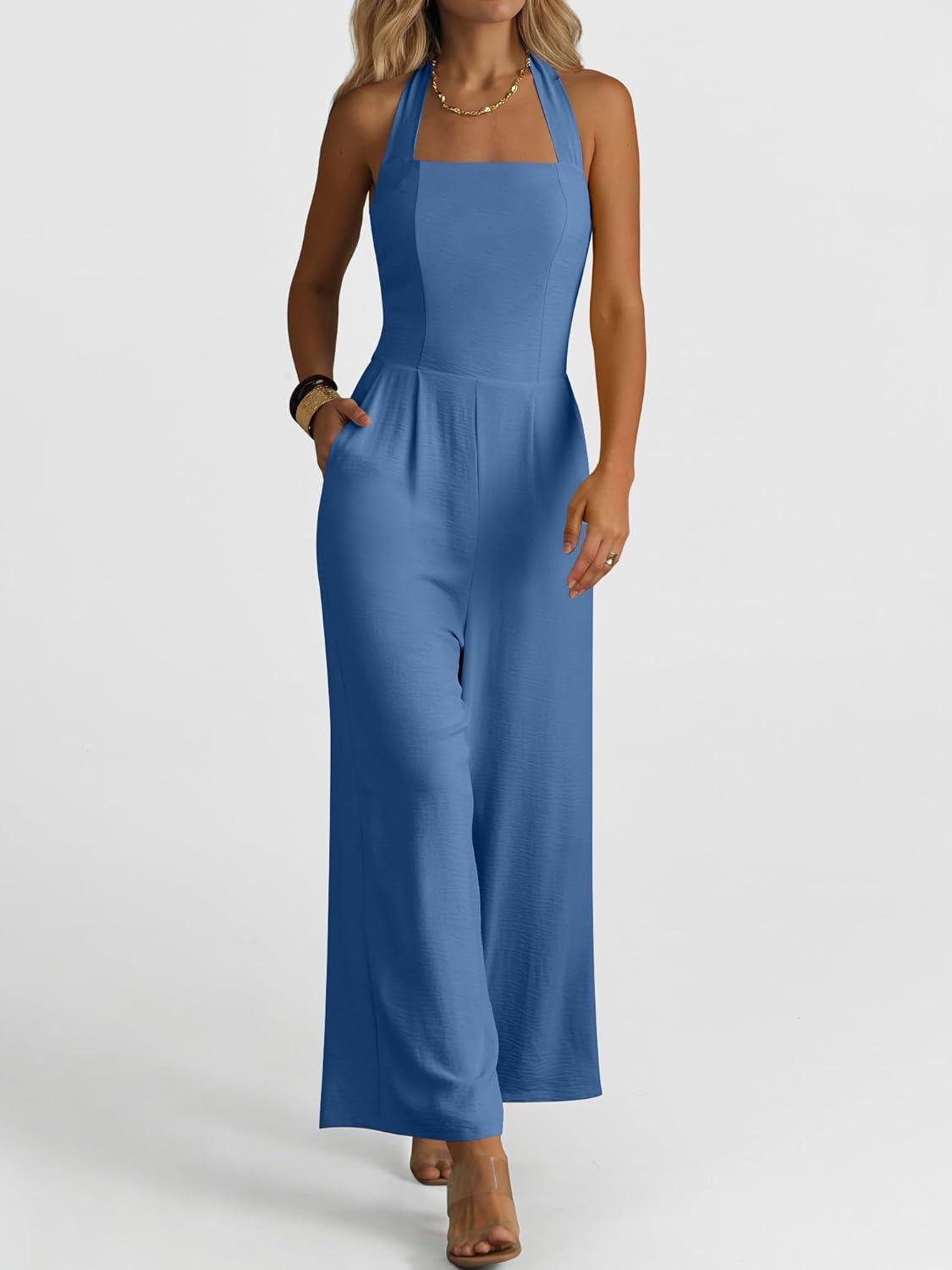 ANRABESS Dressy Jumpsuits for Women Summer Casual Sleeveless Wide Leg Rmpers with Pockets One Piece Outfits 2026 Spring(Navy Blue)