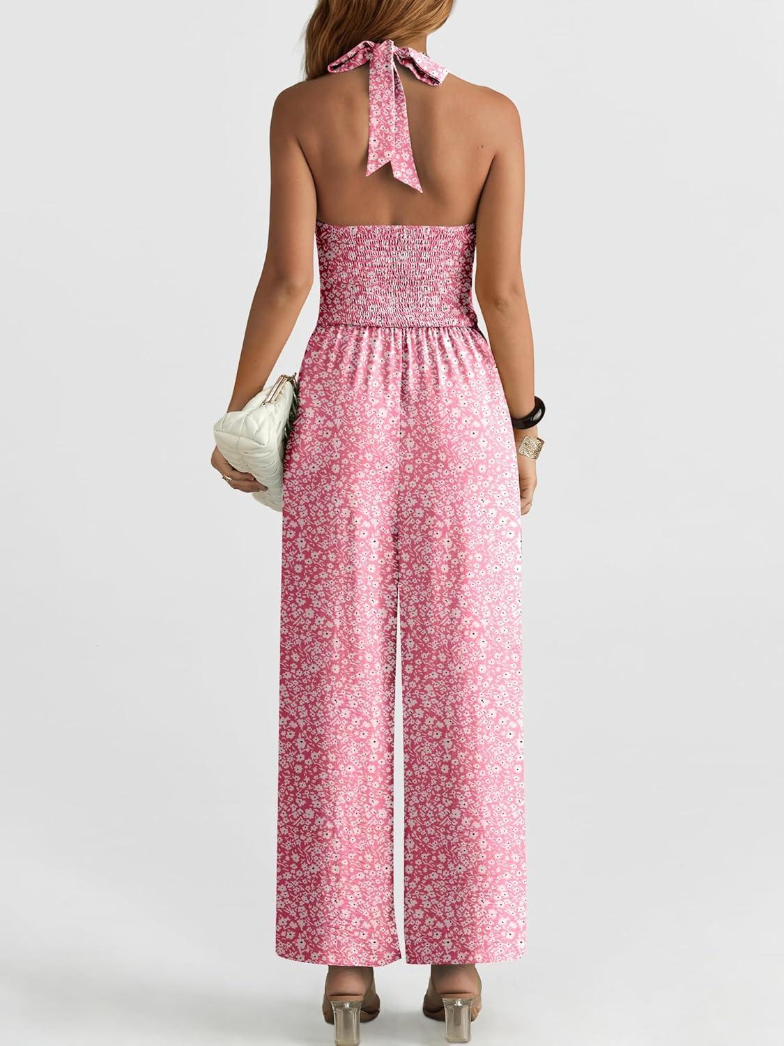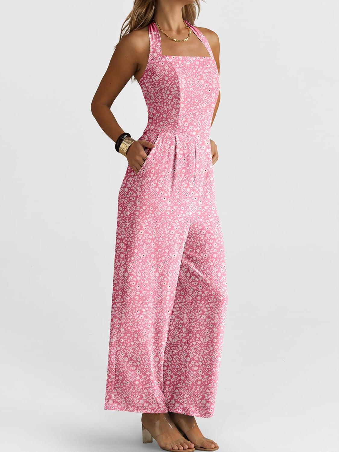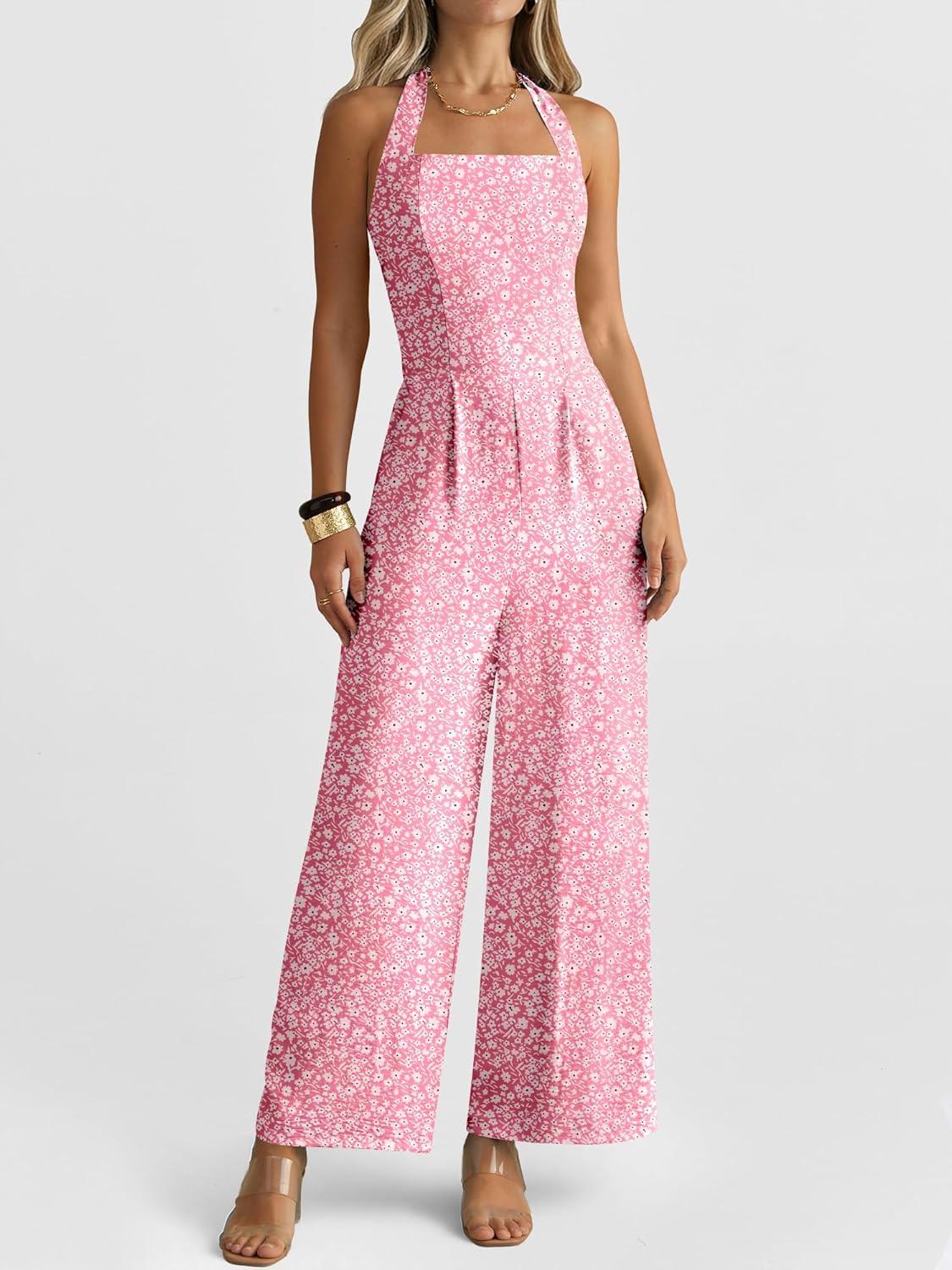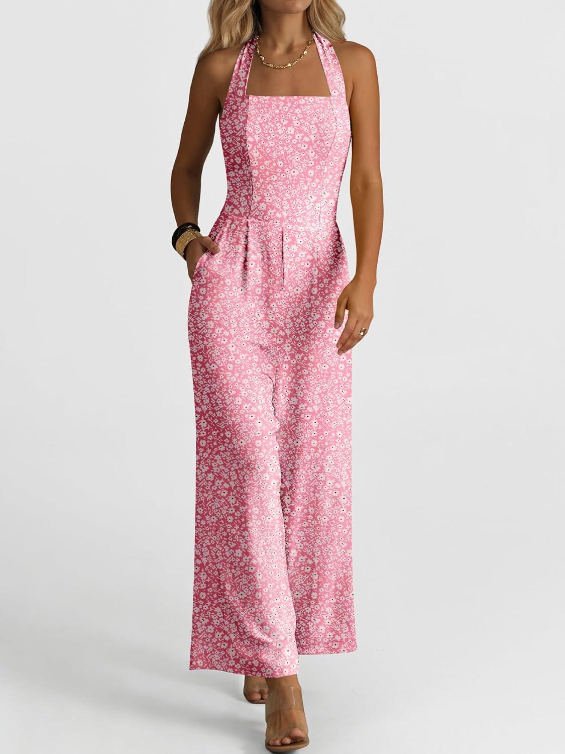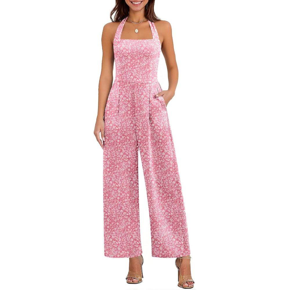 ANRABESS Dressy Jumpsuits for Women Summer Casual Sleeveless Wide Leg Rmpers with Pockets One Piece Outfits 2026 Spring(Pink Floral)