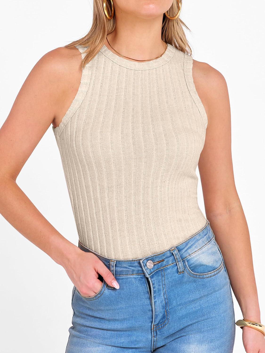 imageANRABESS High Neck Tank Tops for Women Sleeveless Shirts Summer 2026 Basic Soft Slim Fit Racerback Trendy Casual OutfitsLight Khaki