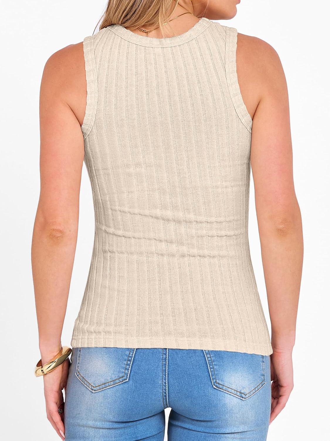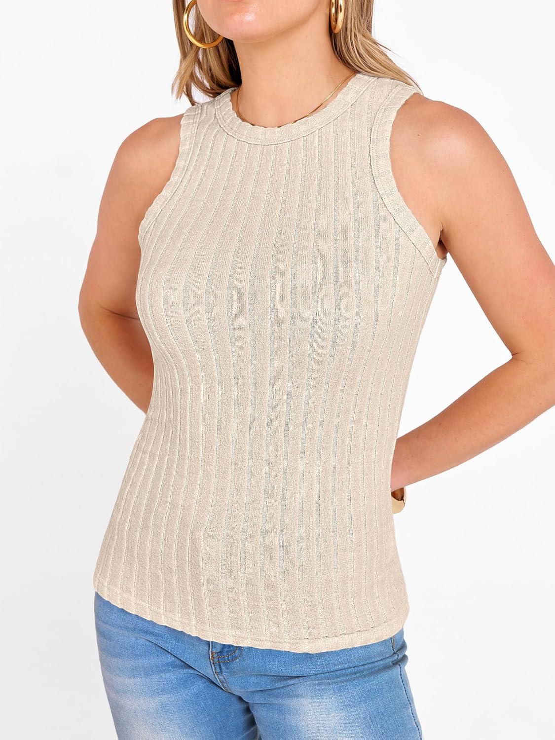 ANRABESS High Neck Tank Tops for Women Sleeveless Shirts Summer 2026 Basic Soft Slim Fit Racerback Trendy Casual Outfits(Light Khaki)