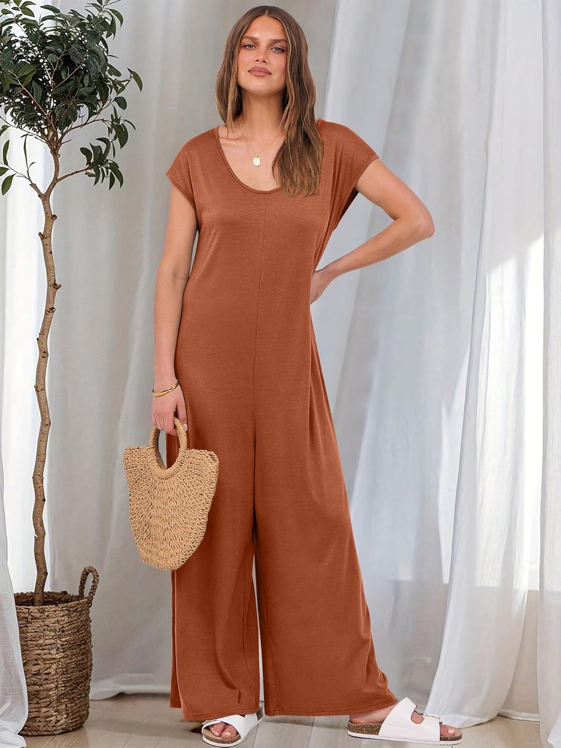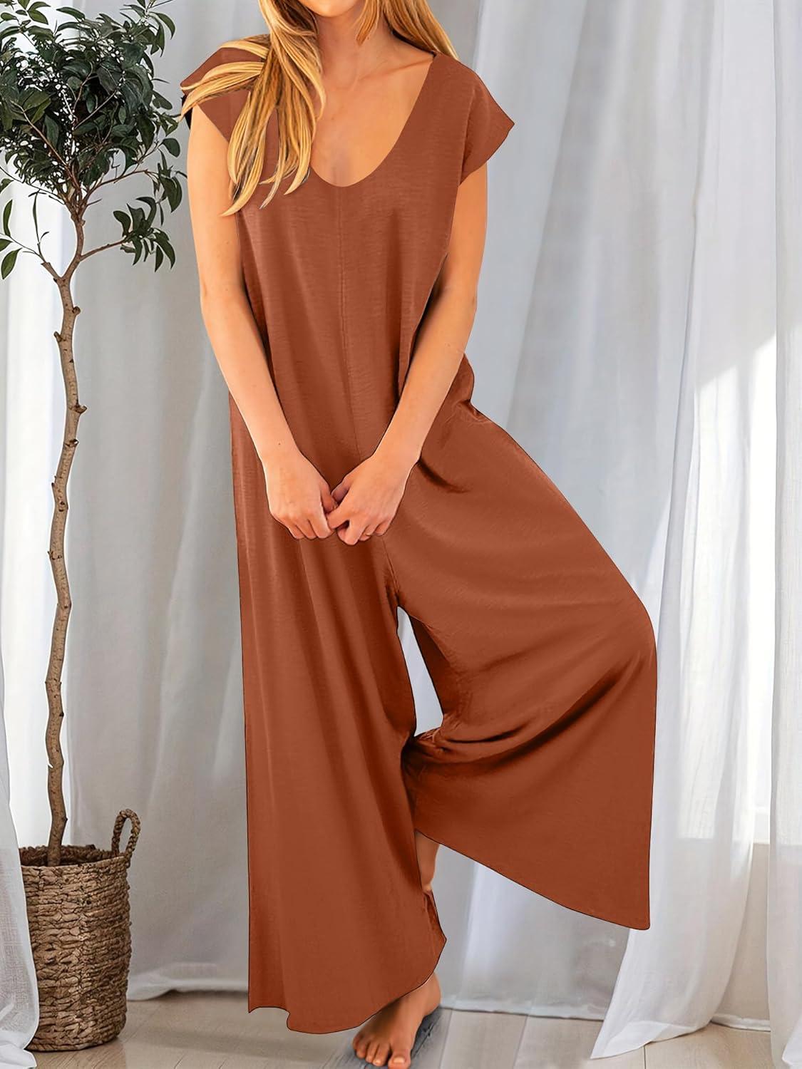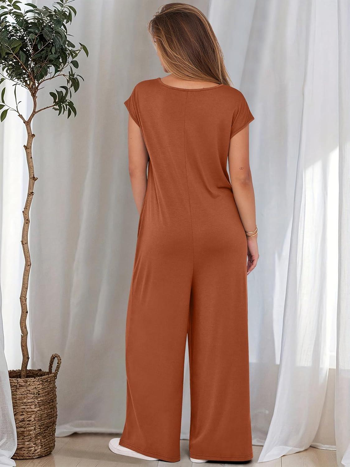 ANRABESS Jumpsuits for Women 2025 Summer Casual Loose Cap Sleeve Crewneck Wide Leg Rompers Jumper One Piece Beach Outfits(Orange)