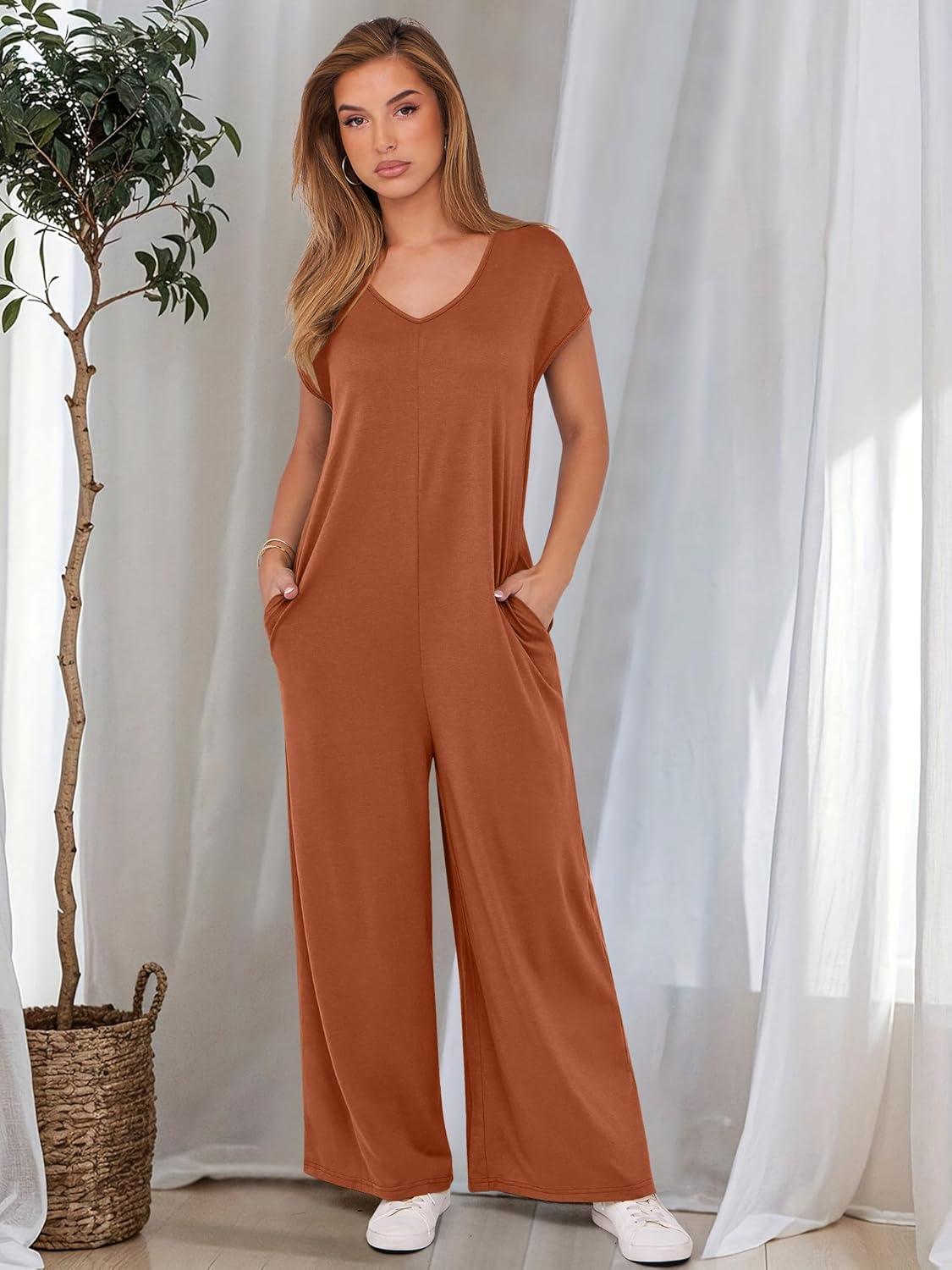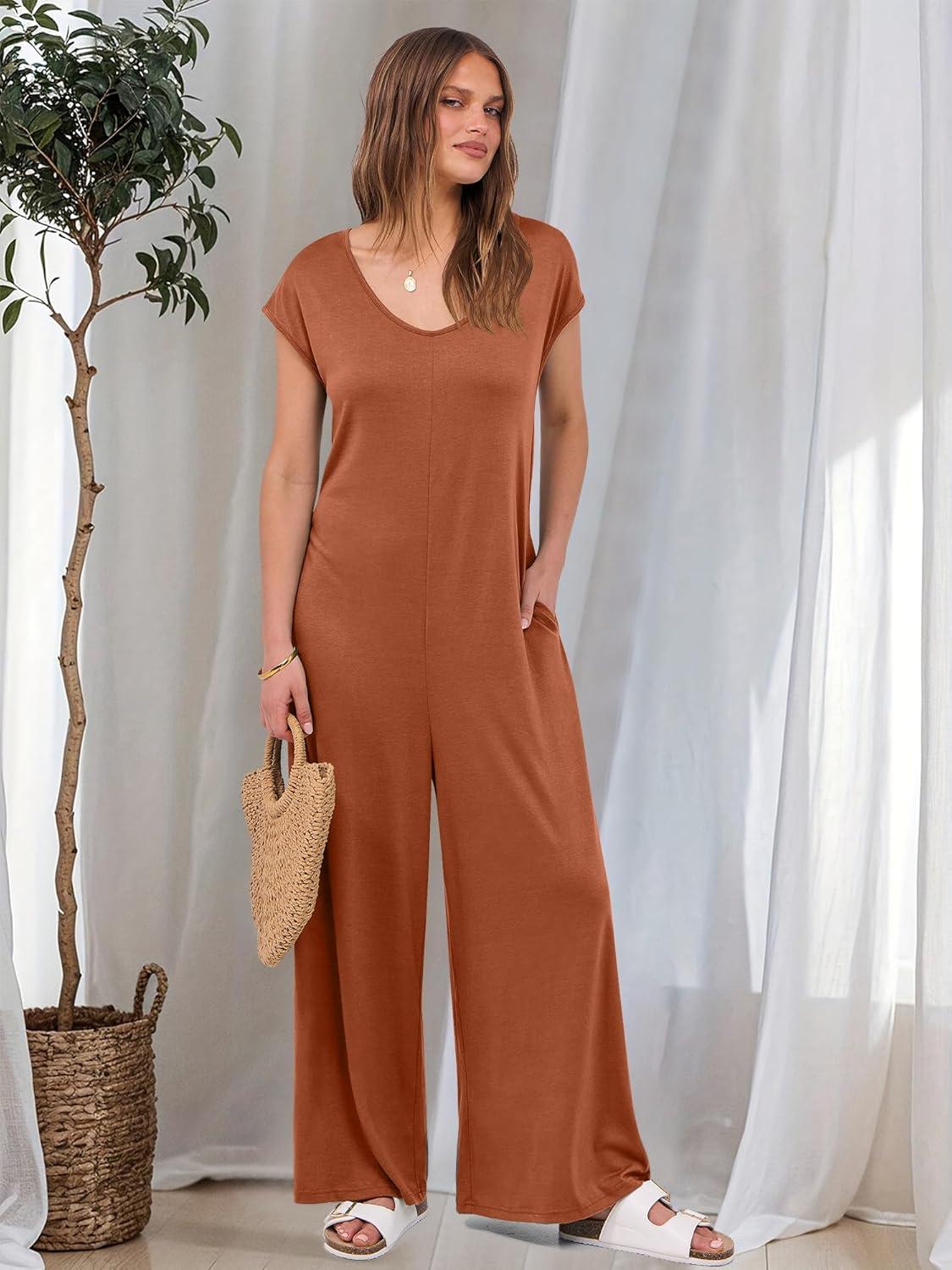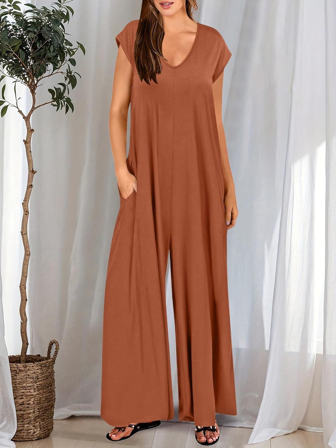 ANRABESS Jumpsuits for Women 2025 Summer Casual Loose Cap Sleeve Crewneck Wide Leg Rompers Jumper One Piece Beach Outfits(Orange)