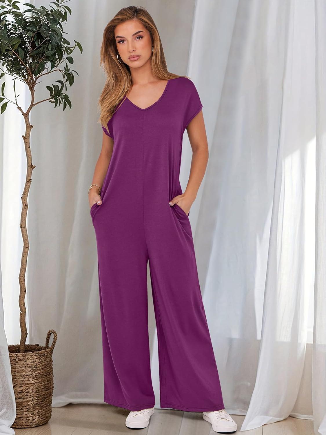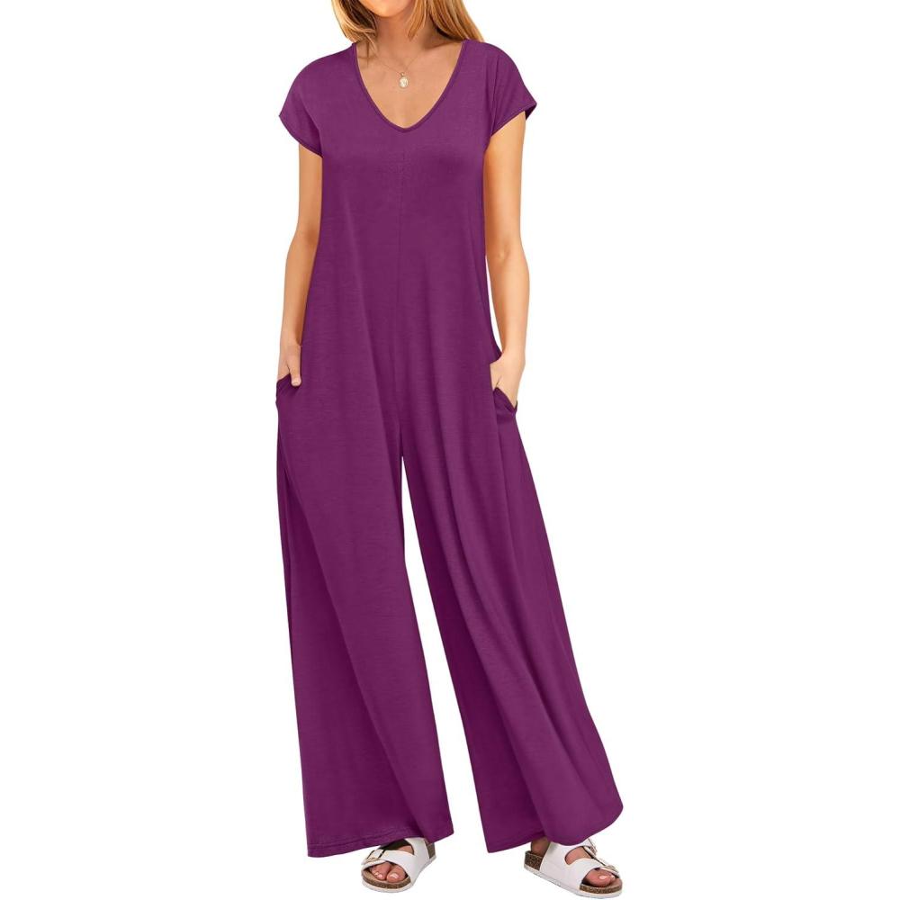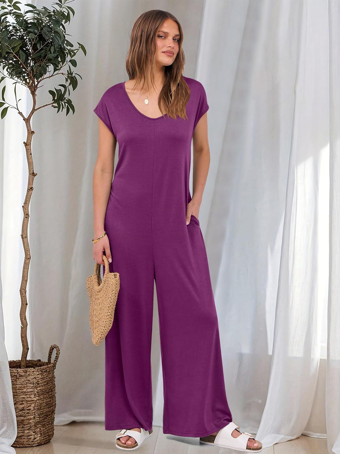 Be the first to review “ANRABESS Jumpsuits for Women 2025 Summer Casual Loose Cap Sleeve Crewneck Wide Leg Rompers Jumper One Piece Beach Outfits(Purple Red)”