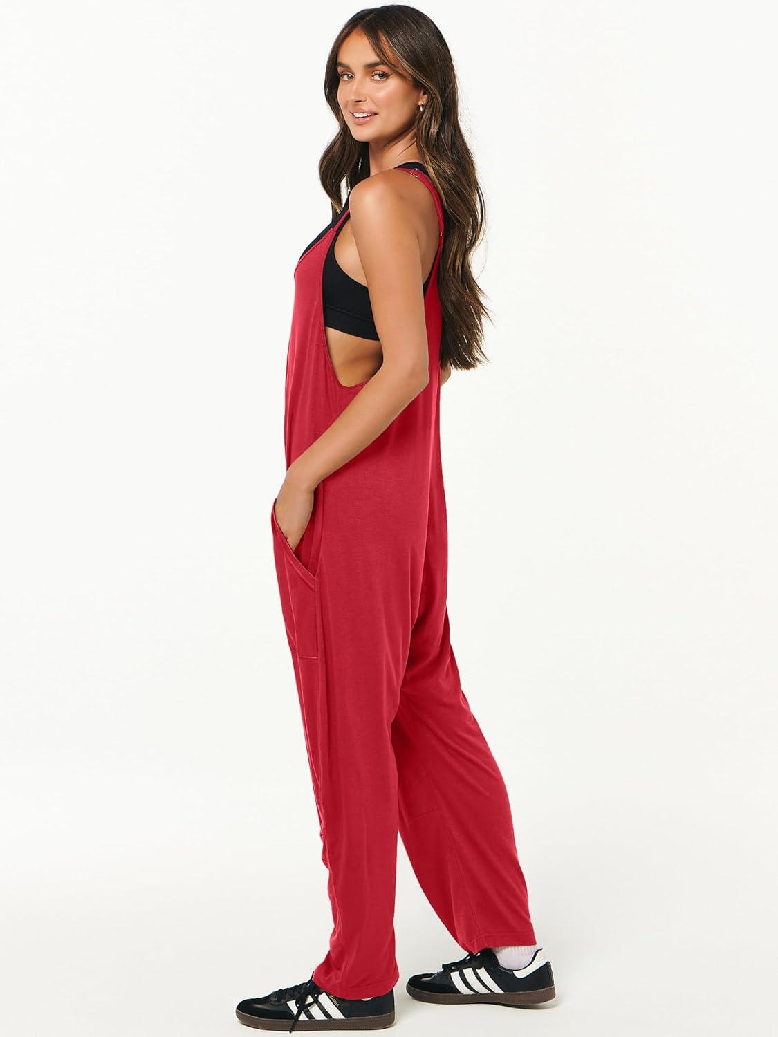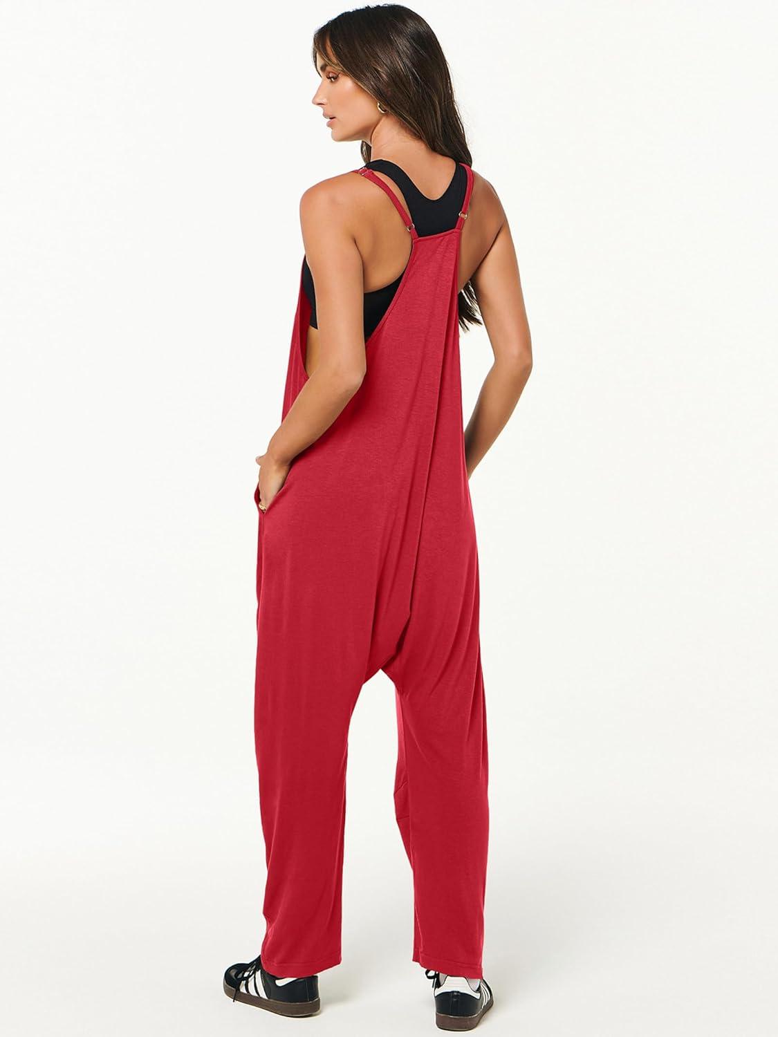 ANRABESS Jumpsuits for Women Casual Summer Overalls Sleeveless Spaghetti Strap Romper Jumpers Trendy Beach Vacation Outfits(Bright Red)