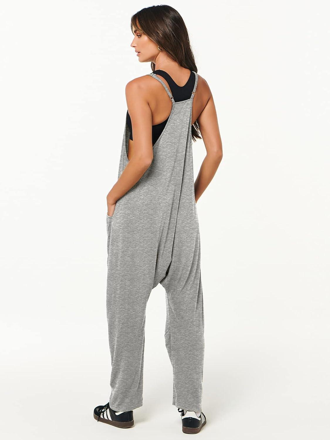 ANRABESS Jumpsuits for Women Casual Summer Overalls Sleeveless Spaghetti Strap Romper Jumpers Trendy Beach Vacation Outfits(Gray)