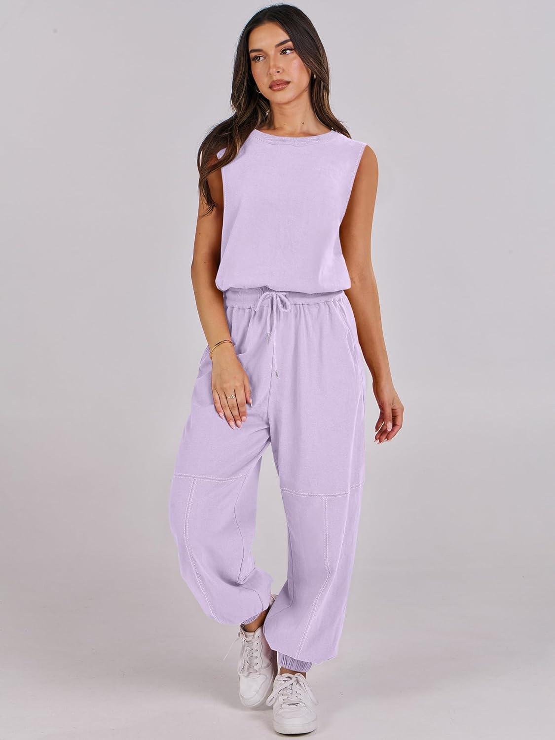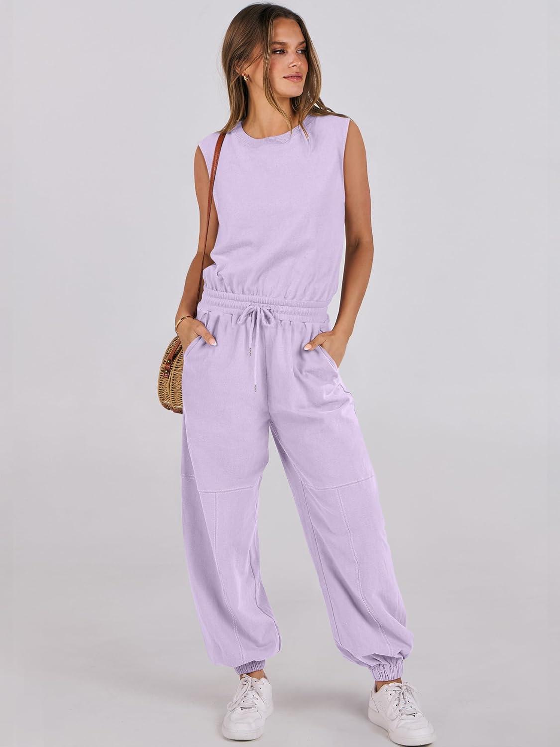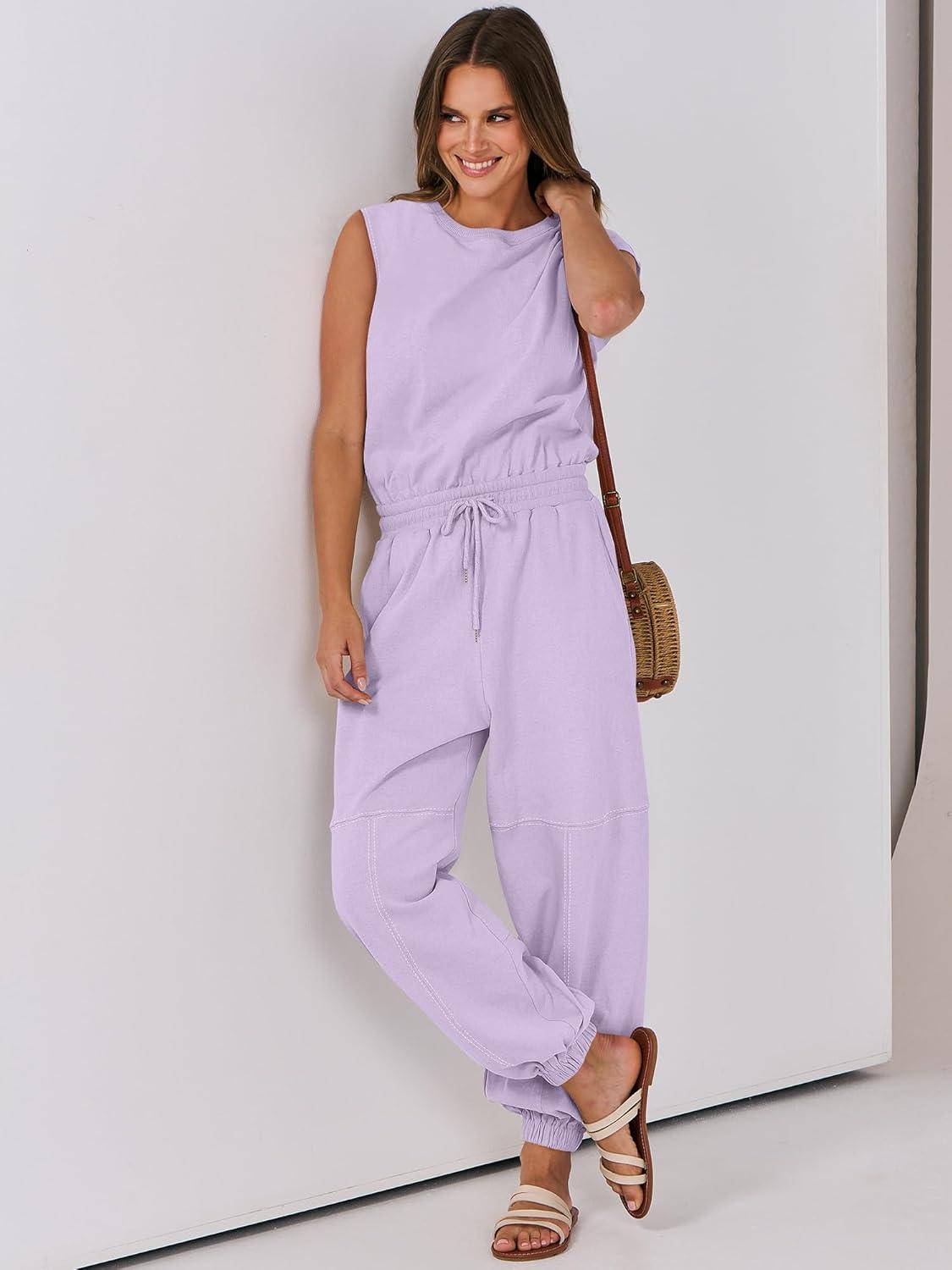 ANRABESS Jumpsuits for Women Casual Summer Sleeveless 2025 Romper One Piece Outfit Active Workout Lounge Jumpsuits Pockets(Light Purple)