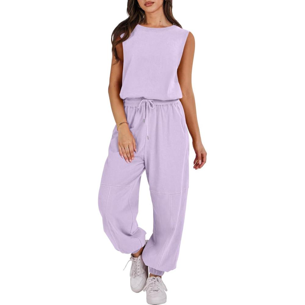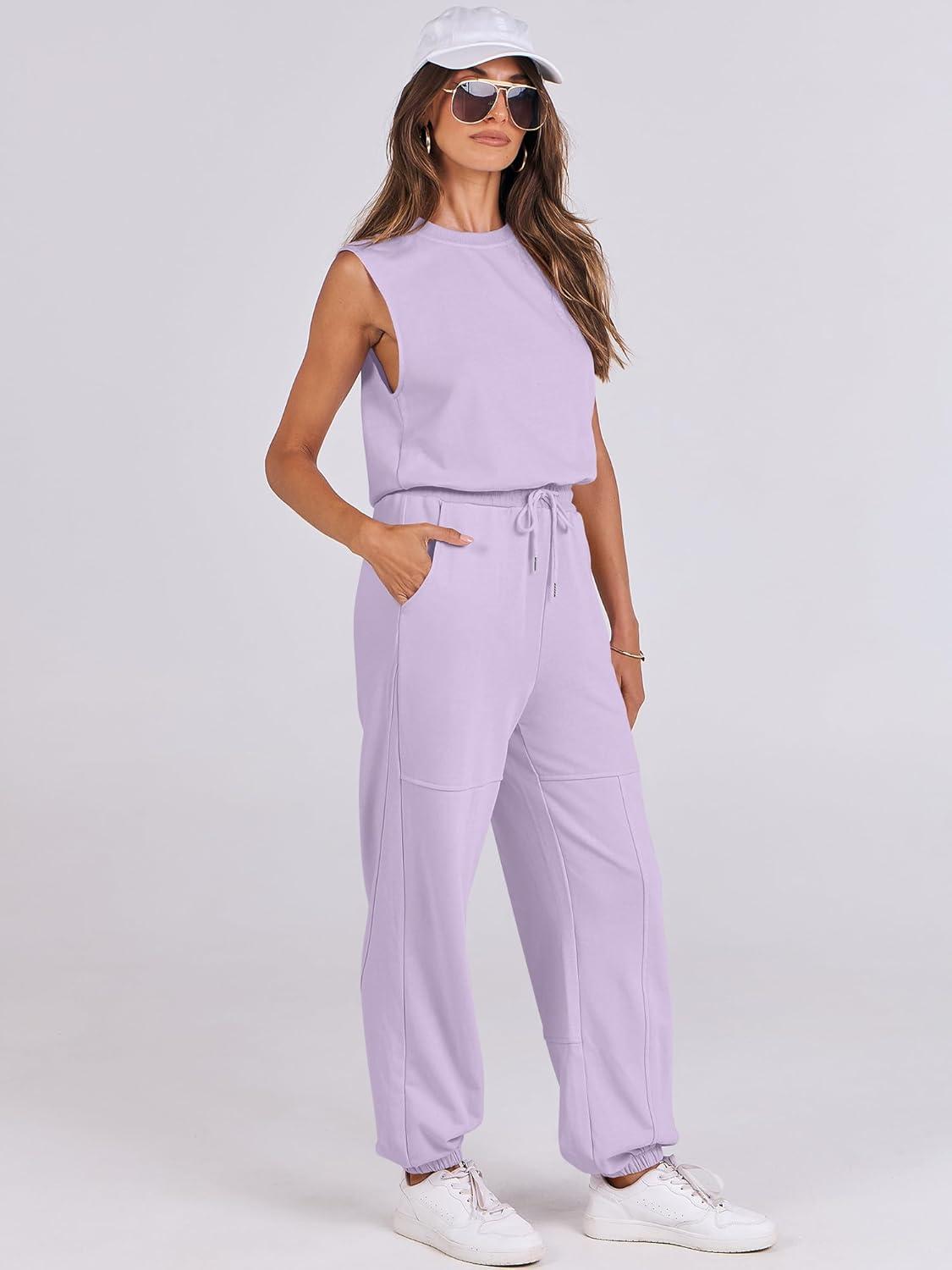 imageANRABESS Jumpsuits for Women Casual Summer Sleeveless 2025 Romper One Piece Outfit Active Workout Lounge Jumpsuits PocketsLight Purple
