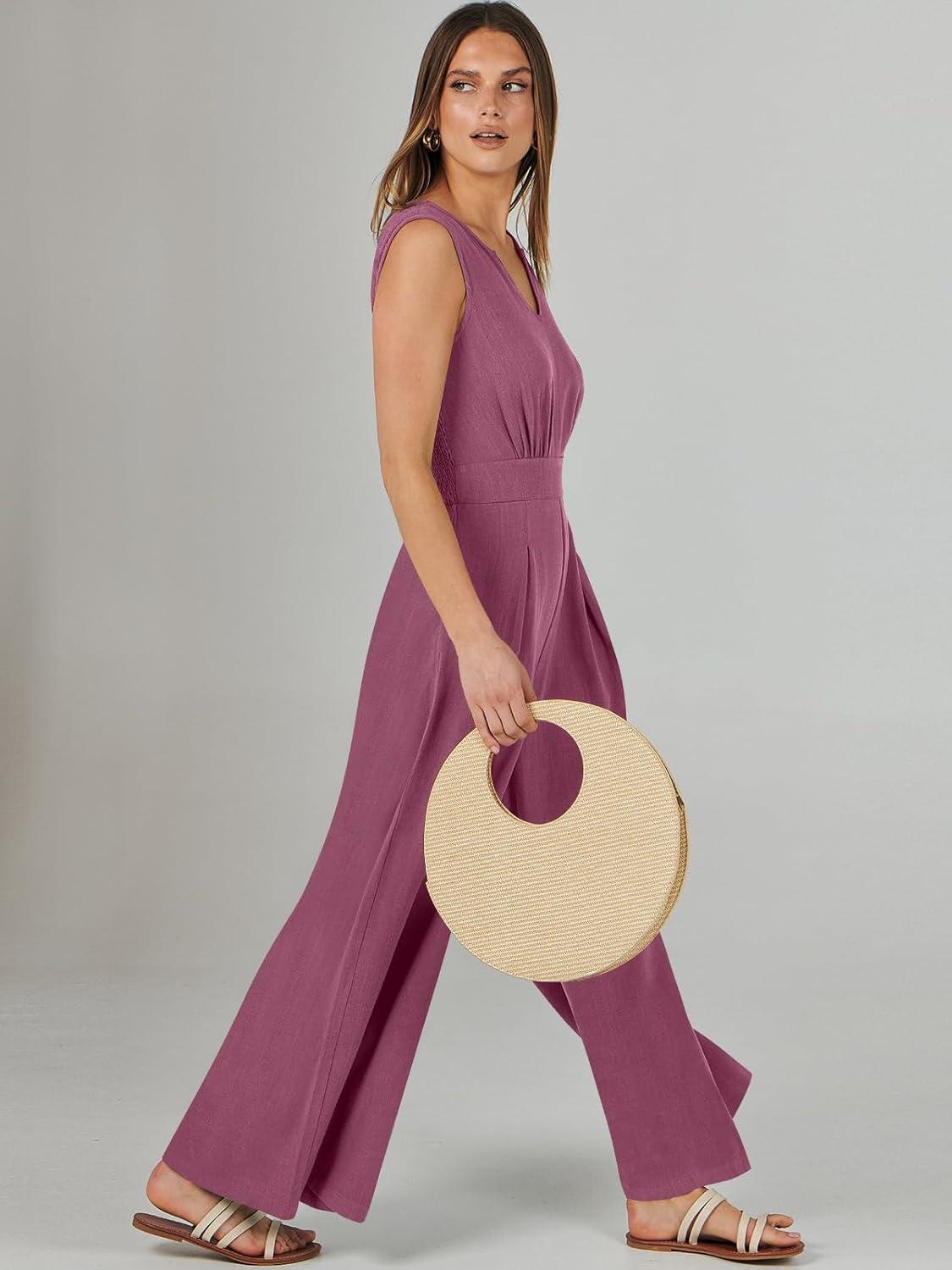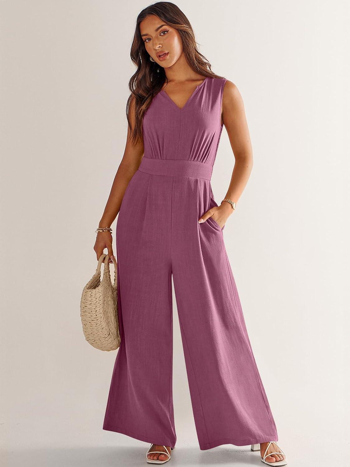imageANRABESS Jumpsuits for Women Summer Dressy Casual Linen Romper Sleeveless V Neck High Waist Wide Leg Beach Vacation OutfitsRose