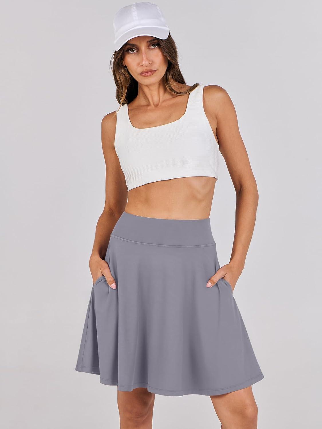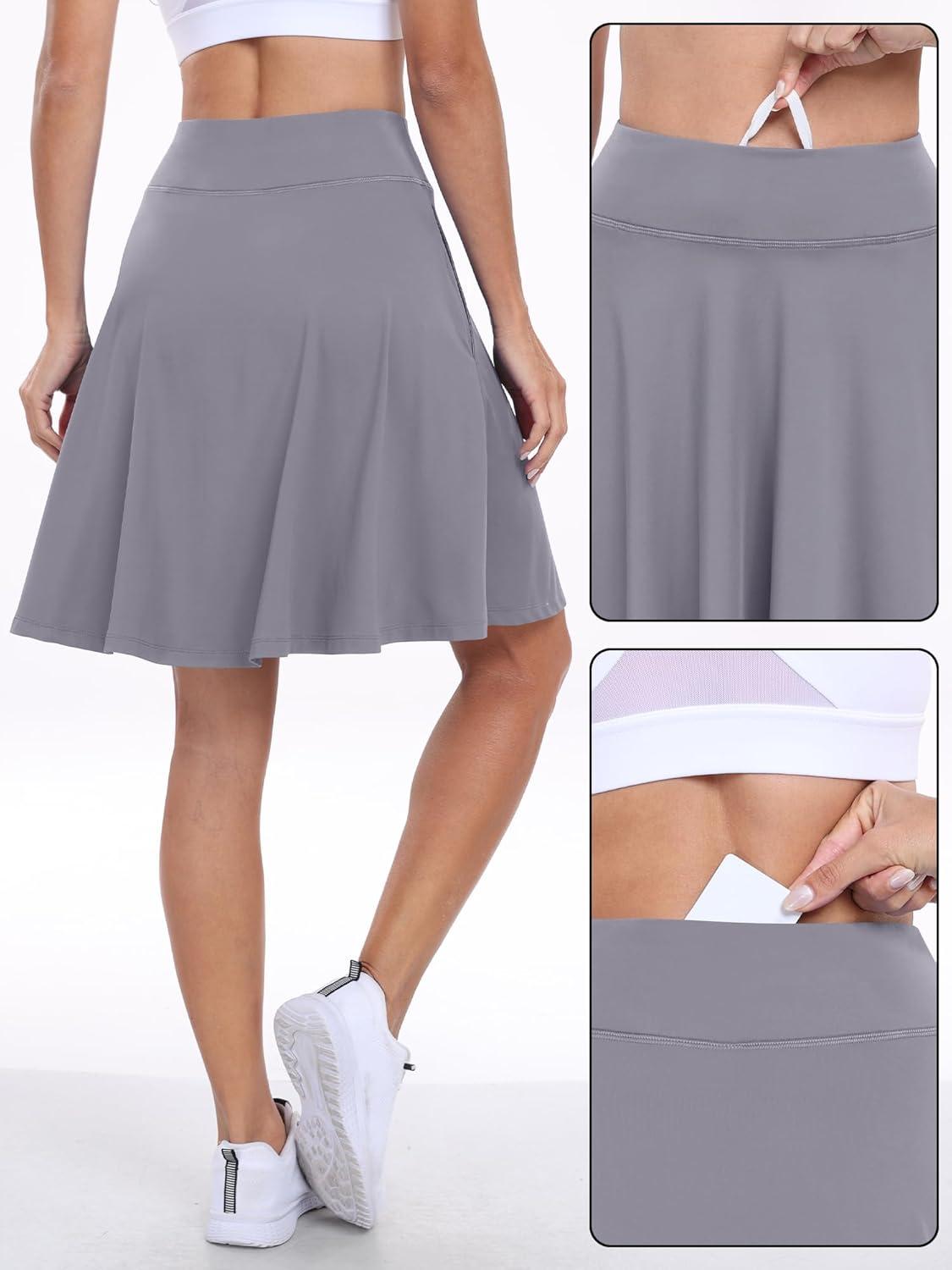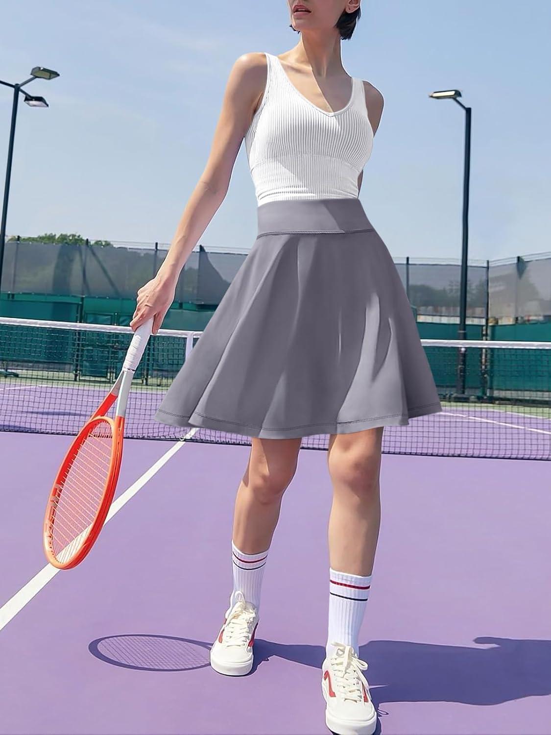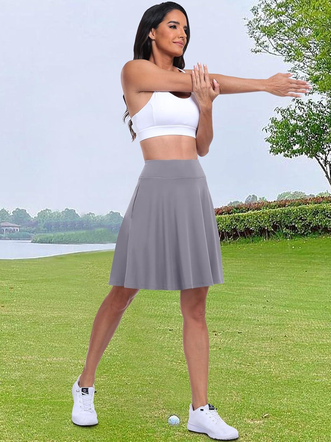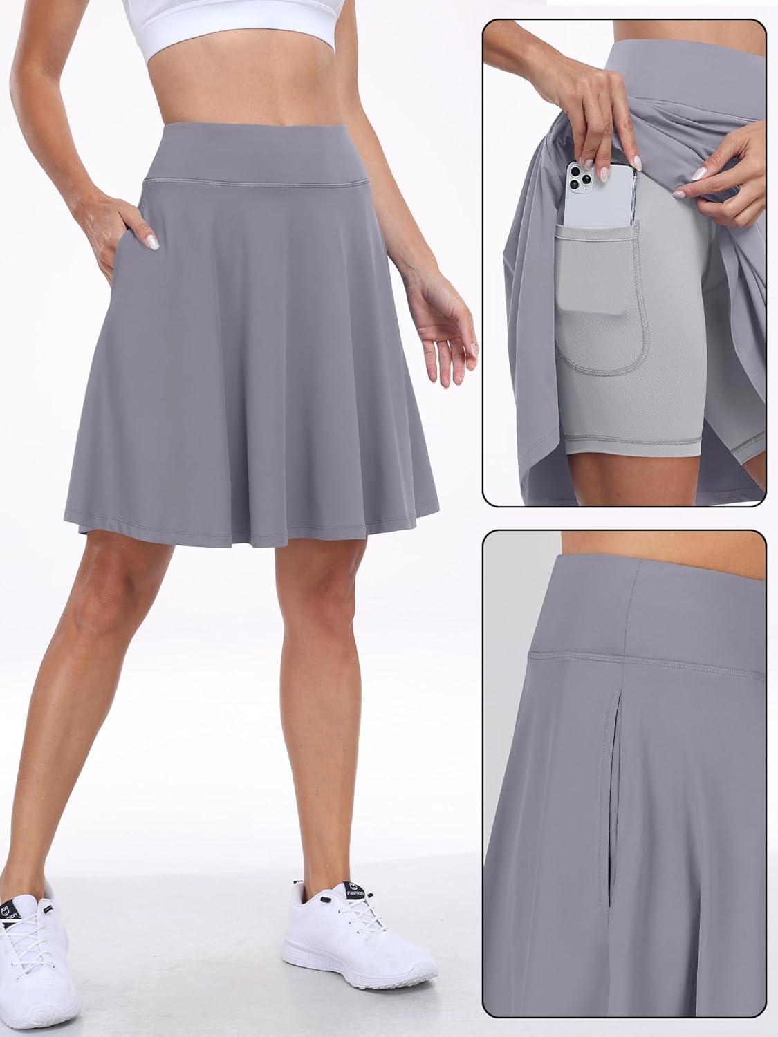 ANRABESS Knee Length Skorts Skirts for Women 2025 Summer High Waisted Golf Tennis Skirt Casual Travel Built-in Shorts Clothes(Gray)