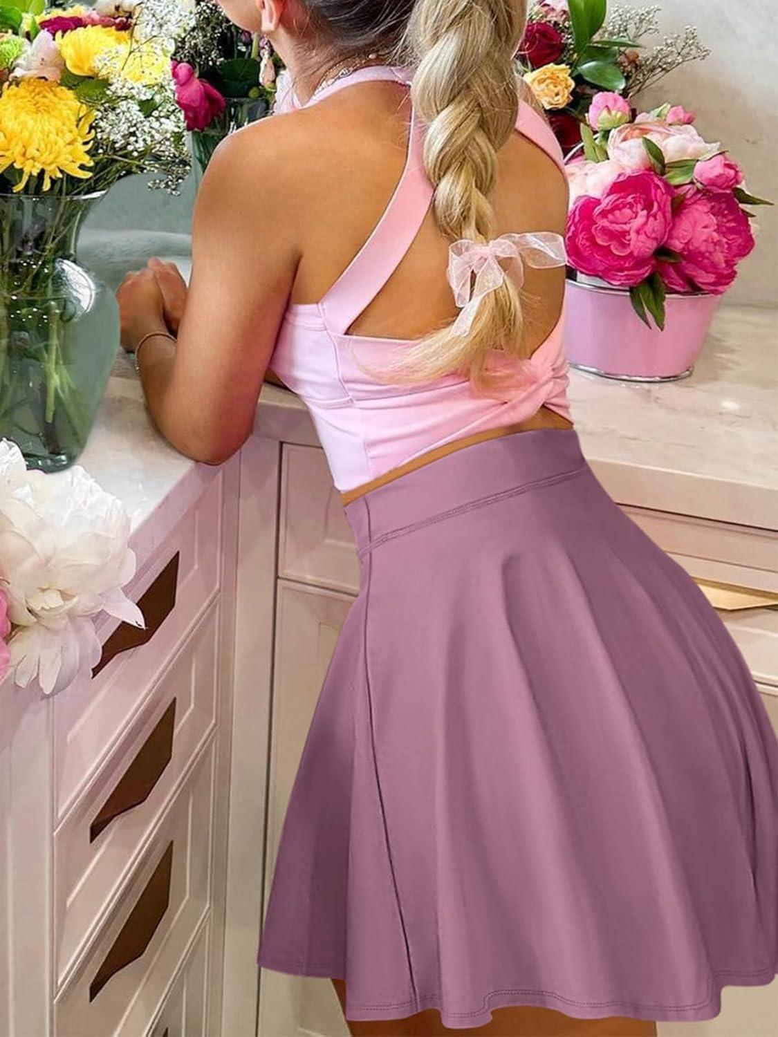 ANRABESS Knee Length Skorts Skirts for Women 2025 Summer High Waisted Golf Tennis Skirt Casual Travel Built-in Shorts Clothes(Mauve)