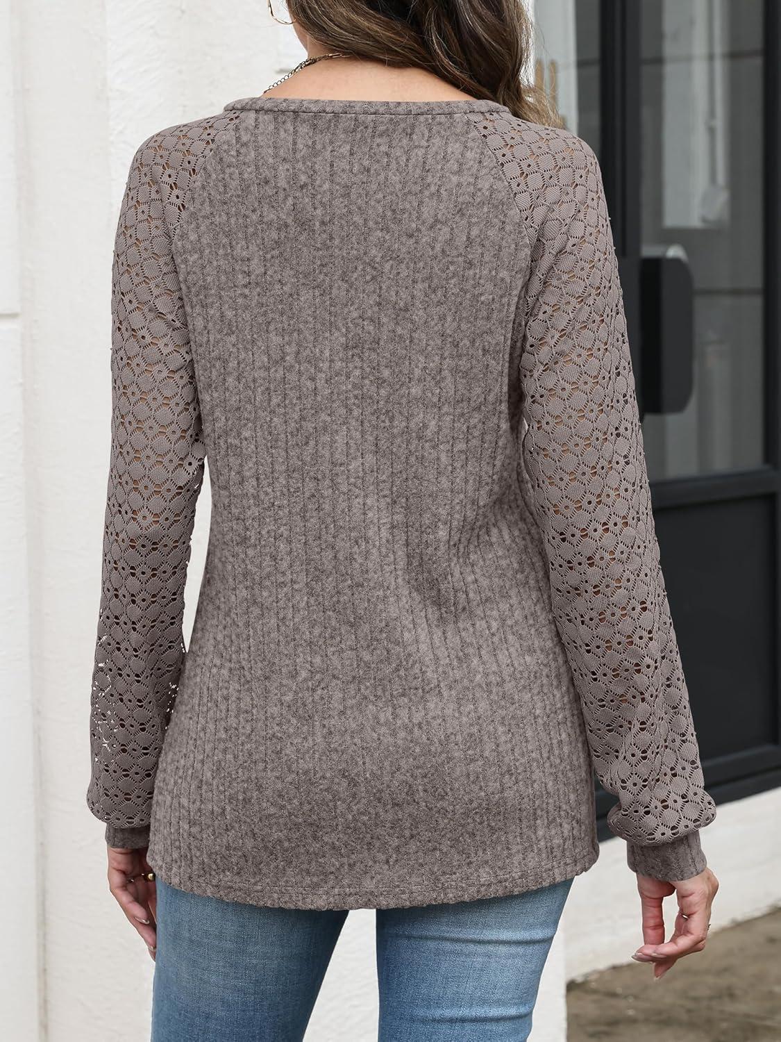 ANRABESS Lace Long Sleeve Tops for Women 2025 Fall Business Casual V Neck Shirts Work Office Trendy Blouses Fashion Outfits(Cool Ash Brown)