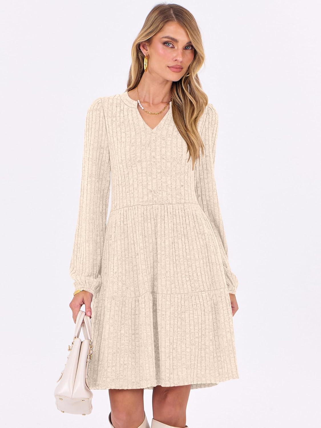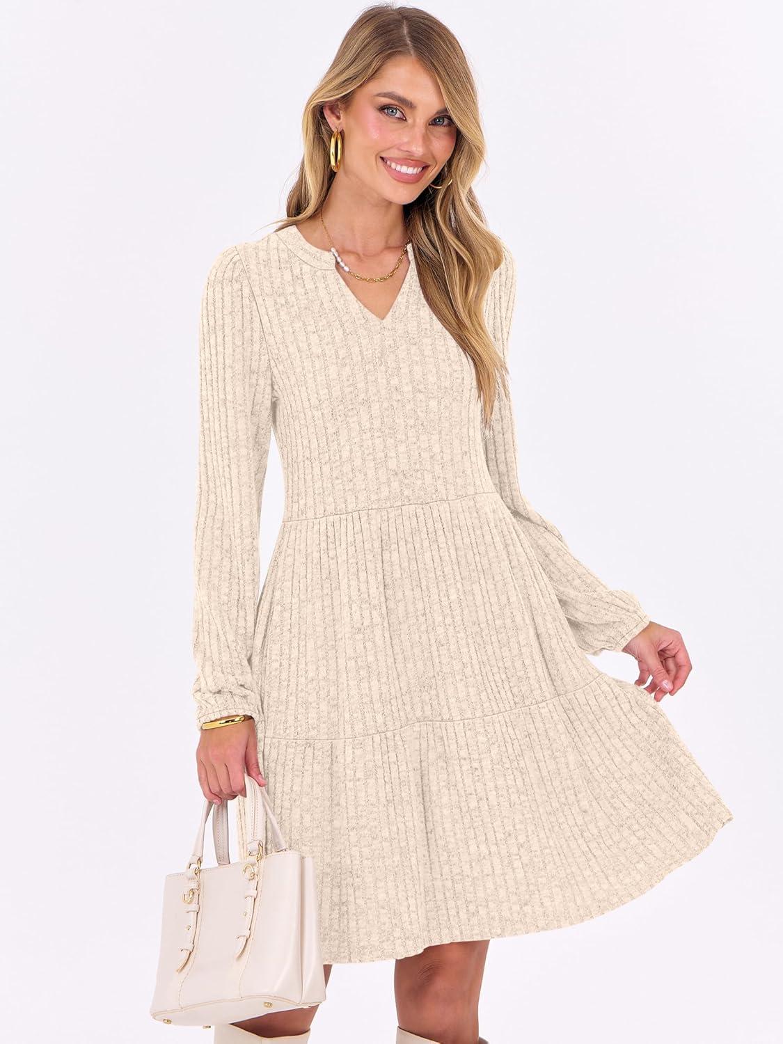 Be the first to review “ANRABESS Long Sleeve Dress for Women Fall Fashion Outfits 2025 Casual V Neck Ribbed Knit Short Sweater Dresses with Pockets(Light Khaki)”
