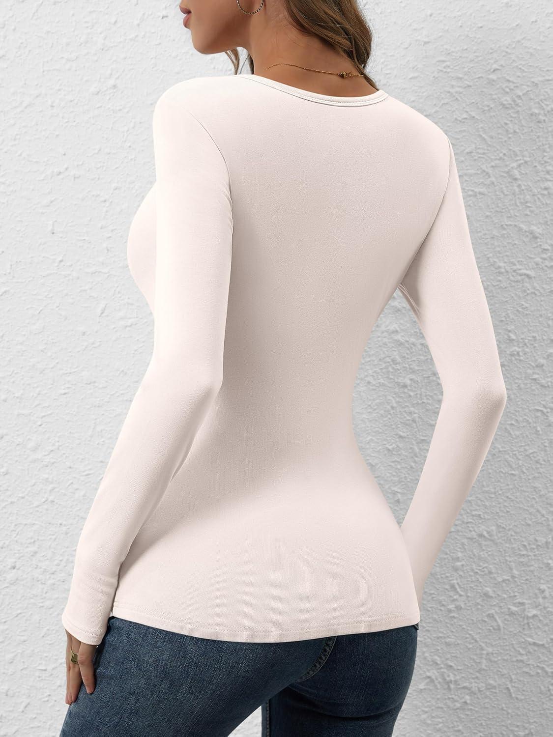 ANRABESS Long Sleeve Henley Shirts for Women Thermal Fleece Tops Knit Fitted Basic T-Shirts 2025 Fall Winter Warm Undershirts(Parchment)