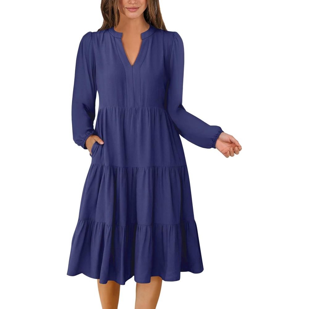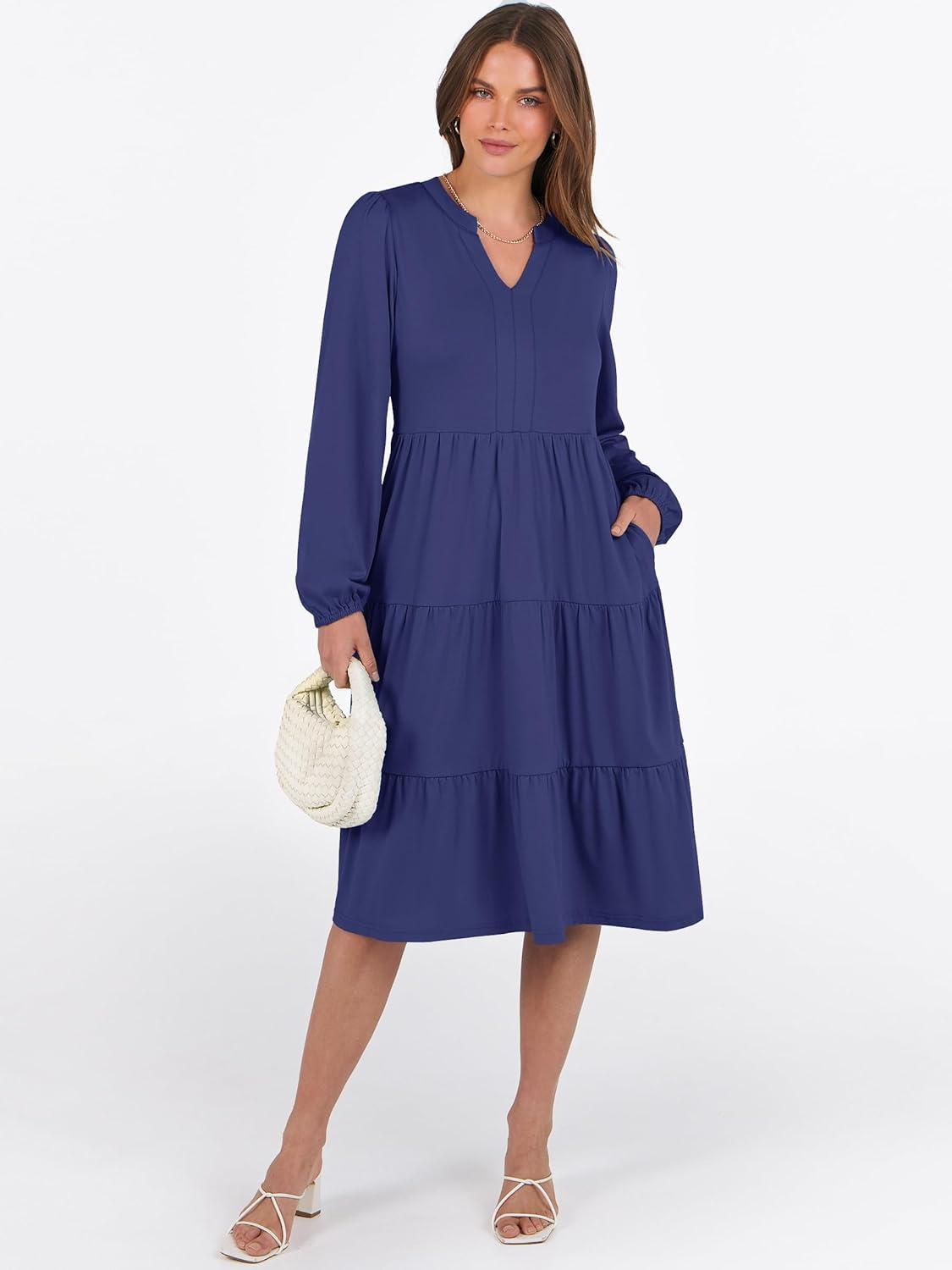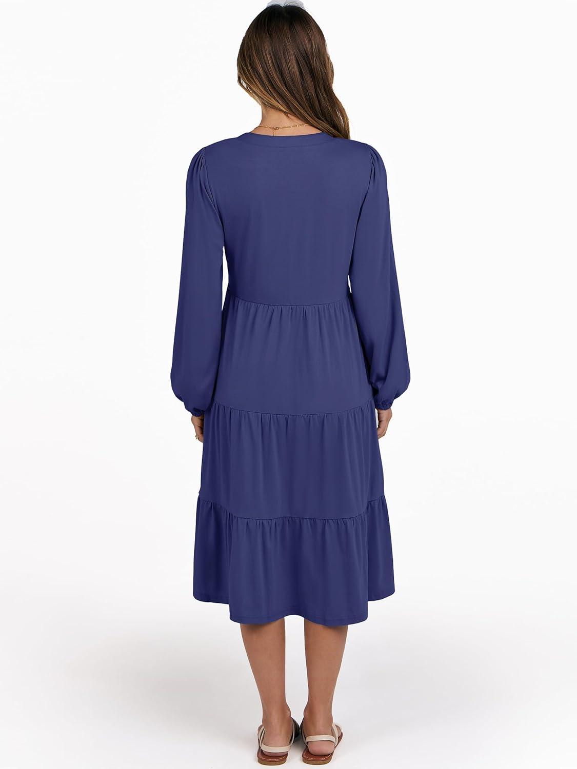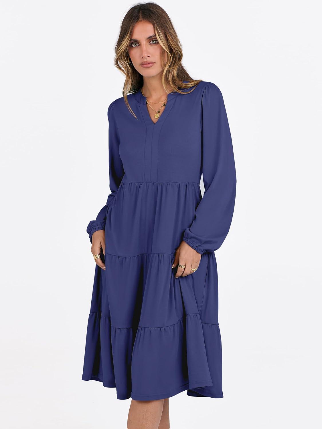 imageANRABESS Long Sleeve Midi Dresses for Women V Neck 2025 Fall Fashion Casual Loose Fit Flowy Swing Tiered Vacation Boho DressNavy Blue