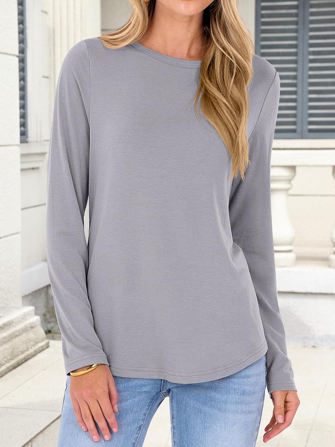 ANRABESS Long Sleeve Shirts for Women Casual Crewneck Basic Tee Tshirts Loose Fit Curved Hem Tunic Top 2025 Fall Outfits(Sliver Gray)