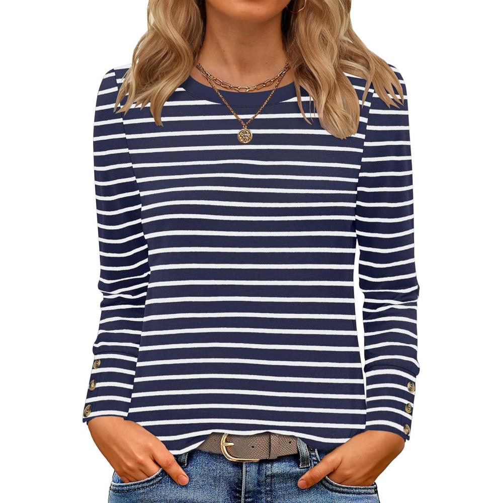 Be the first to review “ANRABESS Long Sleeve Shirts for Women Crewneck Basic Tee Striped Tops 2025 Fall Casual Loose Fit T Shirts Fashion Outfits(Blue White Stripe)”